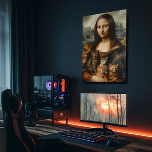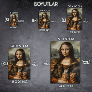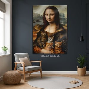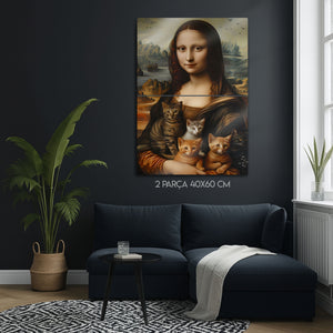 Bu eser, sadece bir reprodüksiyon değil, aynı zamanda klasik sanat ile modern popüler kültürün ve hayvan sevgisinin keyifli bir birleşimidir. Mona Lisa'nın o meşhur gizemli ifadesi, kedilerin masumiyetiyle birleşerek, her sanatseverin ve kedi tutkununun yüzünde bir tebessüm oluşturacak, unutulmaz bir kompozisyon yaratıyor.