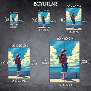 Vaporwave ve synthwave estetiğini andıran pembe ve turuncu tonlarındaki bu eser, Luffy'nin neşeli ve özgür ruhunu mükemmel bir şekilde yansıtıyor. Bu tablo, sadece bir anime posteri değil, aynı zamanda hayallerinin peşinden gitmenin ve özgürlüğün bir simgesidir. Oyun odaları, genç odaları, stüdyolar veya modern yaşam alanlarına anında bir renk, neşe ve macera ruhu katacaktır.