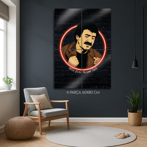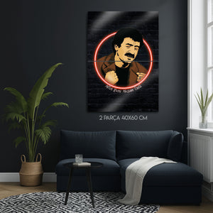 Bu eser, her Müslüm Gürses hayranı için bir dekorasyon objesinden çok daha fazlasını; bir yaşam felsefesini, derin bir hüznü ve samimiyeti ifade ediyor. Karanlık tuğla duvar arka planı, neon ışığın yarattığı modern dokunuşu ve sanatçının o unutulmaz duruşunu mükemmel bir şekilde öne çıkarır. Bu tablo, müzik odaları, "man cave"ler, restoranlar, barlar veya modern yaşam alanlarına anında bir karakter, nostalji ve sanatsal bir ruh katacaktır.