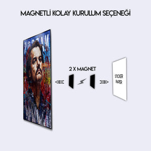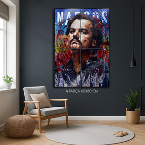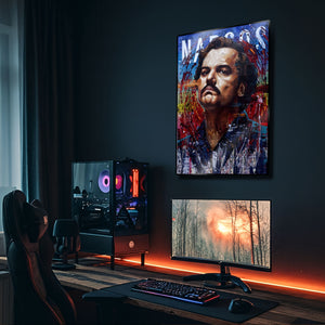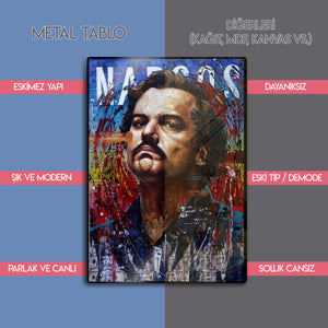 Her bir fırça darbesi ve renk patlaması, Escobar'ın karmaşık karakterini ve imparatorluğunun kaotik doğasını yansıtıyor. Bu eser, sadece bir dizi posteri değil, aynı zamanda güç, para ve hırs üzerine düşündüren bir sanat objesidir. Metalin parlak yüzeyi, bu canlı renkleri ve katmanlı kompozisyonu daha da öne çıkarır. Ofisler, "man cave"ler, salonlar veya modern yaşam alanlarına anında bir karakter ve iddialı bir ruh katacaktır.
