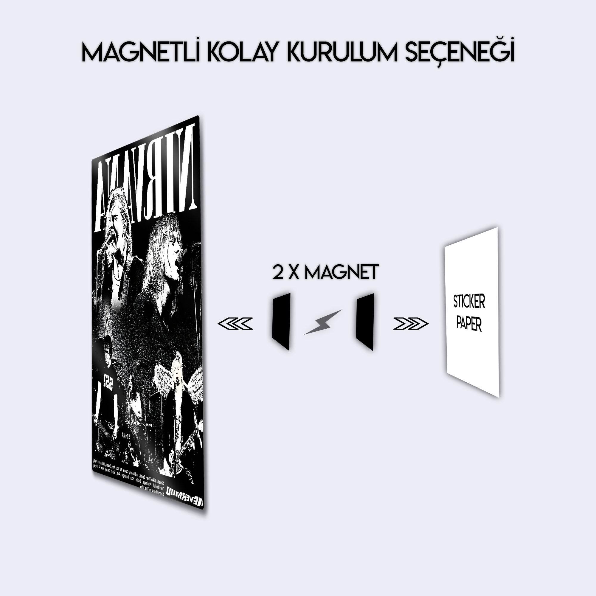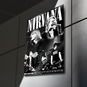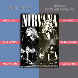 Bu tablo, sadece bir müzik posteri değil, aynı zamanda 90'ların ruhunu, bir müzik devrimini ve bir efsanenin mirasını yansıtan bir sanat eseridir. "Nevermind" albümünün şarkı listesiyle tamamlanan bu eser, her Nirvana hayranı için paha biçilmez bir koleksiyon parçasıdır. Metalin modern ve tok duruşu, bu zamansız tasarımın her bir anını ve dokusunu öne çıkarır.