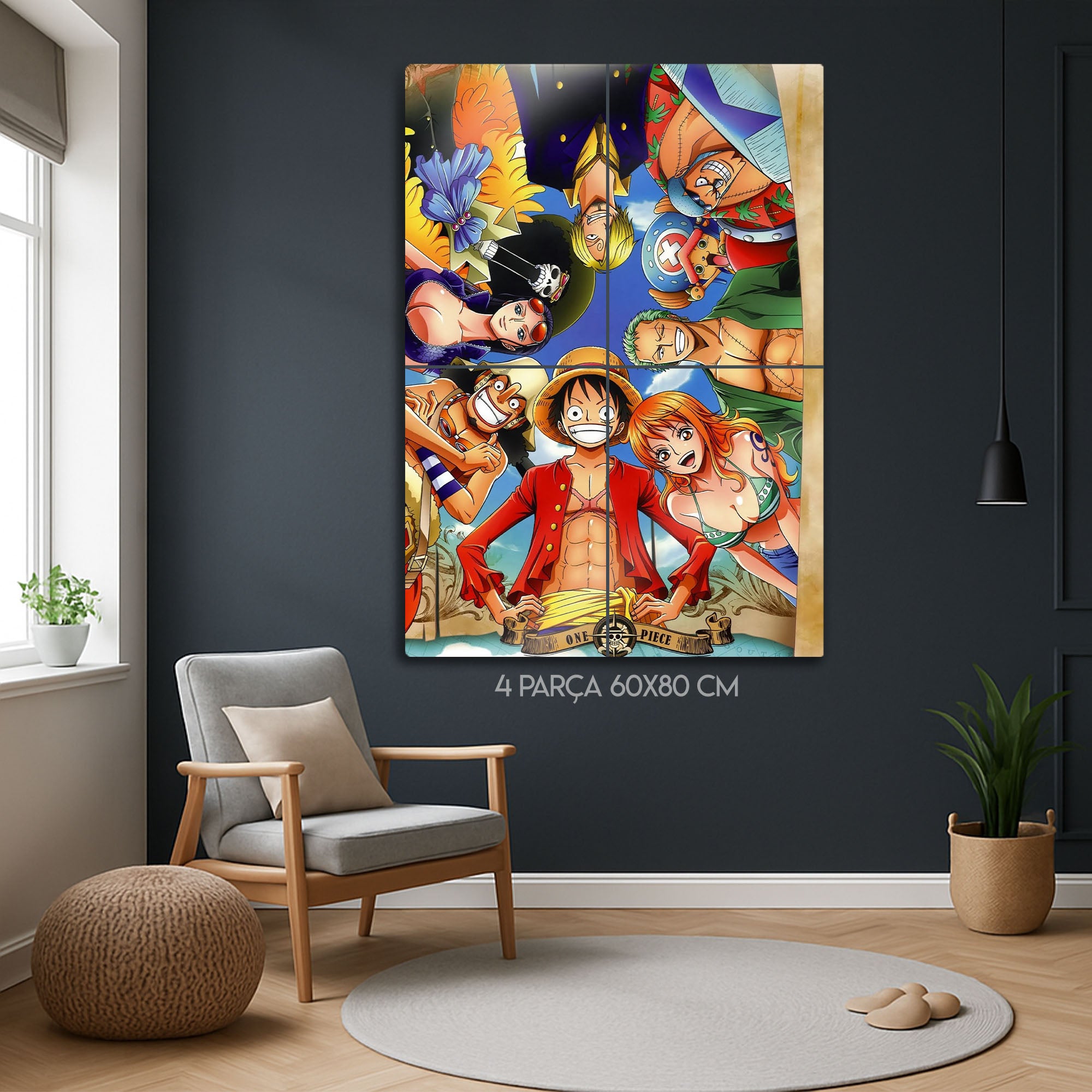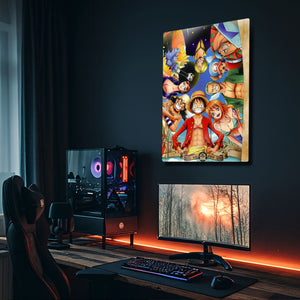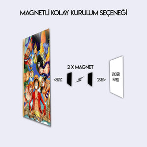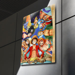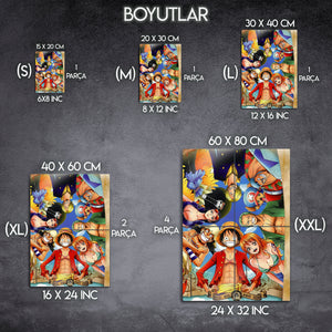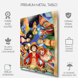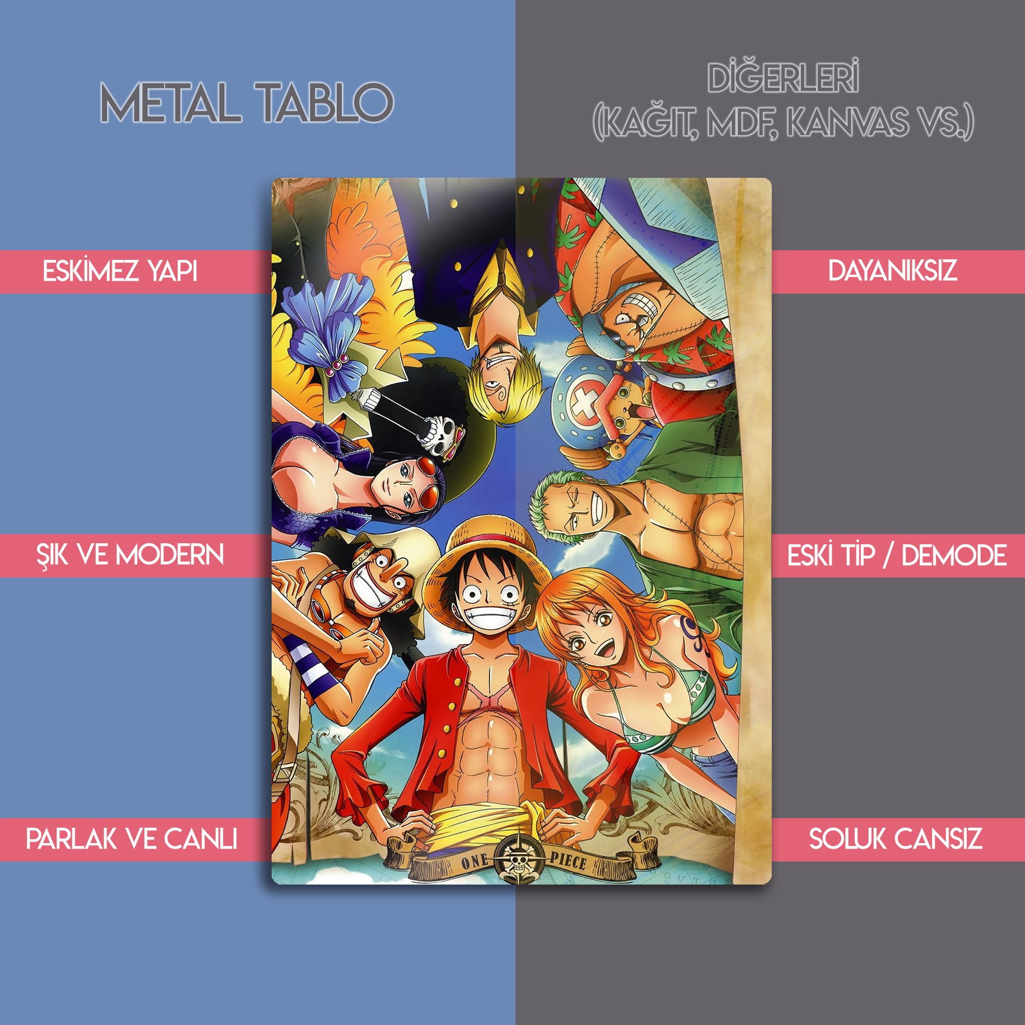 ''Korsanlar Kralı Ben Olacağım!'' Grand Line'ın en çılgın ve en sadık tayfası Hasır Şapka Korsanları'nın o bitmek bilmeyen neşesini, dostluğunu ve macera ruhunu duvarlarınıza taşıyın! Bu özel tasarım metal tablo, Kaptan Monkey D. Luffy ve tayfasının (Zoro, Nami, Usopp, Sanji, Chopper, Robin, Franky, Brook) en ikonik anlarından birini, tüm karakterlerin bir araya geldiği neşeli bir kompozisyonla sunuyor.