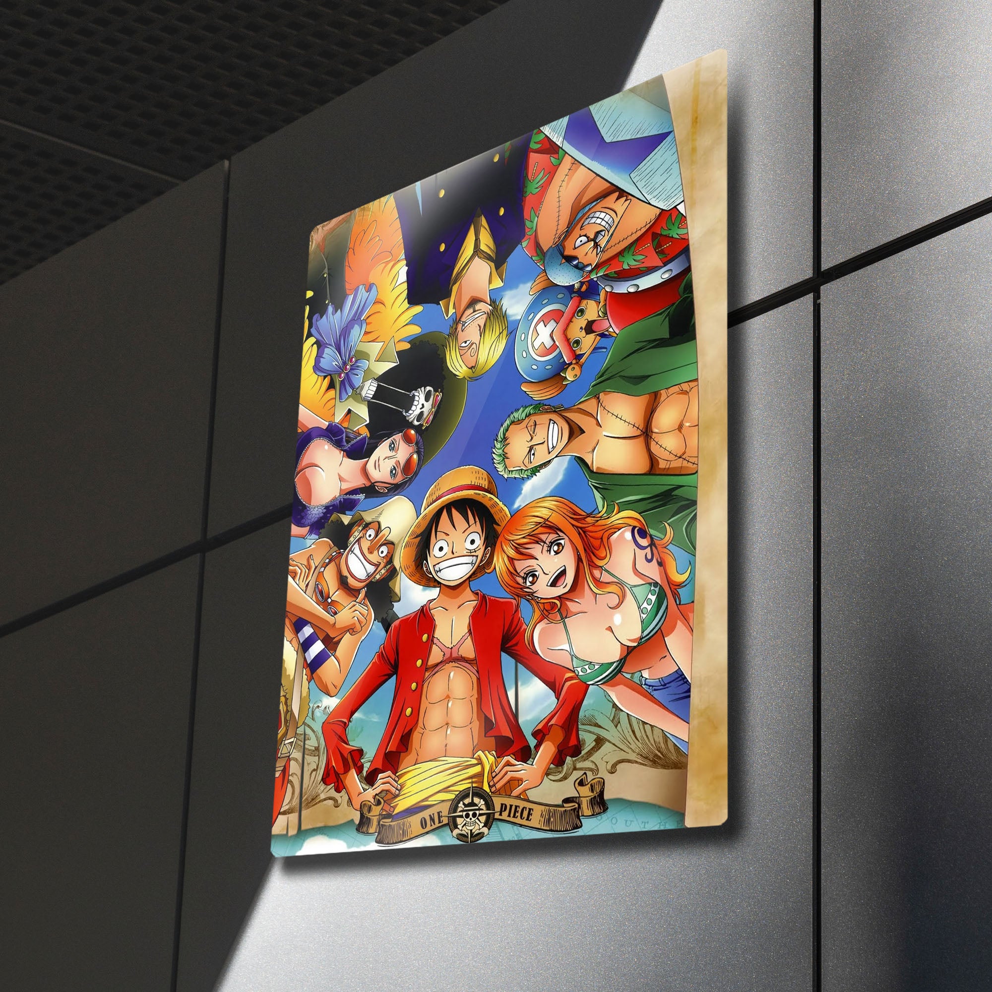 Eski bir hazine haritasını andıran vintage kenar efektleriyle bu eser, sadece bir anime posteri değil, aynı zamanda dostluğun, hayallerin ve özgürlüğün bir kutlamasıdır. Metalin modern ve canlı yüzeyi, her bir karakterin özgün tasarımını ve renklerini mükemmel bir şekilde öne çıkarır. Oyun odaları, genç odaları, stüdyolar veya modern yaşam alanlarına anında bir renk, neşe ve macera ruhu katacaktır.