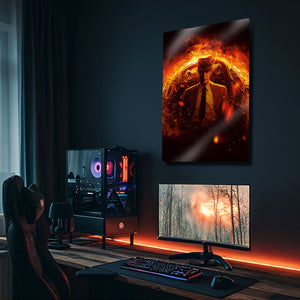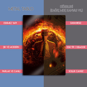 Ateşin, dumanın ve kıvılcımların yarattığı bu epik kompozisyon, filmin o gerilim dolu ve görkemli atmosferini mükemmel bir şekilde yansıtıyor. Bu eser, sadece bir film posteri değil, aynı zamanda bilim, güç ve sorumluluk üzerine derin bir felsefi sorgulama sunan bir sanat objesidir. Metalin modern dokusu, bu sinematik anın her bir detayını ve ateşli renklerini inanılmaz bir derinlikle öne çıkarır.