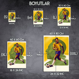 Bu eser, sadece bir spor posteri değil, aynı zamanda bir futbol ikonunun sanatına, dehasına ve mirasına yapılmış nostaljik bir saygı duruşudur. Arka plandaki silüeti ve dönemin sanat akımlarını yansıtan dokusuyla bu tablo, her futbolseverin ve sanat tutkununun koleksiyonunda olması gereken, zamansız bir parçadır.