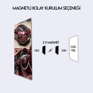 Bu eser, sadece bir araba posteri değil, aynı zamanda tasarım, mühendislik ve lüksün bir kutlamasıdır. Metalin pürüzsüz yüzeyi, otomobilin parlak boyasını, deri iç mekanın dokusunu ve her bir detayı inanılmaz bir netlikle yansıtır. Garajınız, "man cave"iniz, ofisiniz veya modern salonunuz için tasarlanmış bu tablo, mekanınıza anında bir prestij, zarafet ve premium bir atmosfer katacaktır.