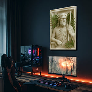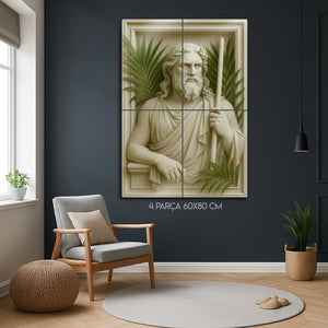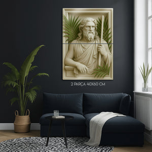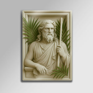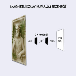 Antik Yunan mitolojisinin güçlü deniz tanrısı Poseidon’un kabartmalı portresi, yaşam alanlarınıza ihtişam ve mitolojik bir aura katıyor. Detaylı işçilikle hazırlanan bu 3D kabartmalı metal tablo, palmiye yapraklarıyla birleşen estetik tasarımı sayesinde klasik sanat ile modern dekorasyonu buluşturur.