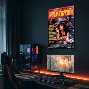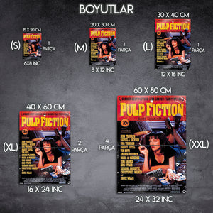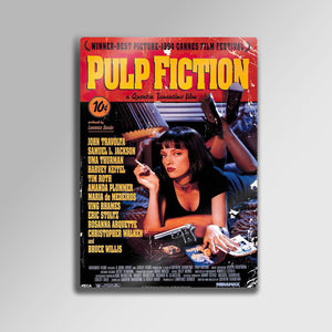'They talk about how "a man's home is his castle", but they don't mention it's filled with rats.'' Sinema tarihini baştan yazan, Quentin Tarantino'nun başyapıtı "Pulp Fiction"ın (Ucuz Roman) o unutulmaz ve anında tanınan afişini, en yüksek kalitede duvarlarınıza taşıyın. Bu metal tablo, Mia Wallace'ın (Uma Thurman) o gizemli ve tehlikeli cazibesini, filmin ikonik "pulp" dergi estetiğiyle birleştiriyor.