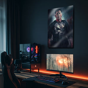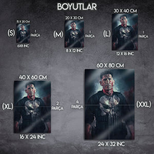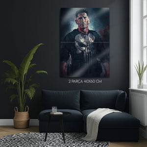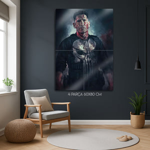Bu eser, sadece bir çizgi roman karakteri posteri değil, aynı zamanda kaybın, intikamın ve adaletin ne anlama geldiğini sorgulatan, karanlık bir sanat eseridir. Yüksek kaliteli metal malzeme üzerine basılan bu sinematik portre, karakterin yüzündeki her bir ifadeyi, ikonik kuru kafa yeleğini ve o anın gerilim dolu atmosferini canlı bir şekilde yansıtır.
