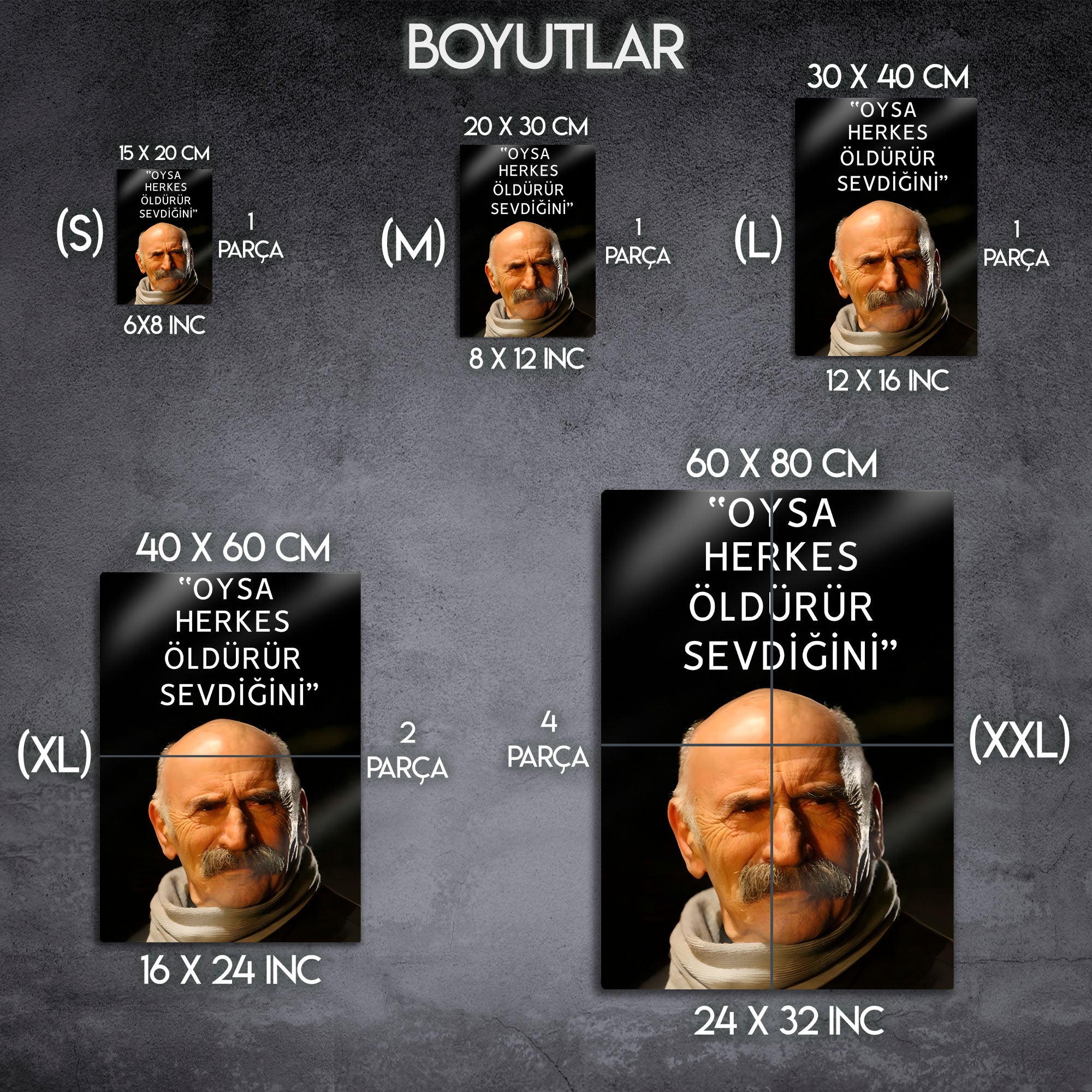 Derin anlamlar taşıyan “Oysa Herkes Öldürür Sevdiğini” Tuncel Kurtiz sözü ile tasarlanmış bu metal tablo, minimalist tasarımı ve etkileyici görselliğiyle dikkat çekiyor. Hem modern hem de duygusal bir atmosfer yaratan bu özel tablo; ev, ofis ya da hediye olarak tercih edilebilecek benzersiz bir dekoratif üründür. Sevdiklerinize anlamlı bir armağan vermek veya yaşam alanınıza edebi bir dokunuş katmak için mükemmel bir seçimdir.