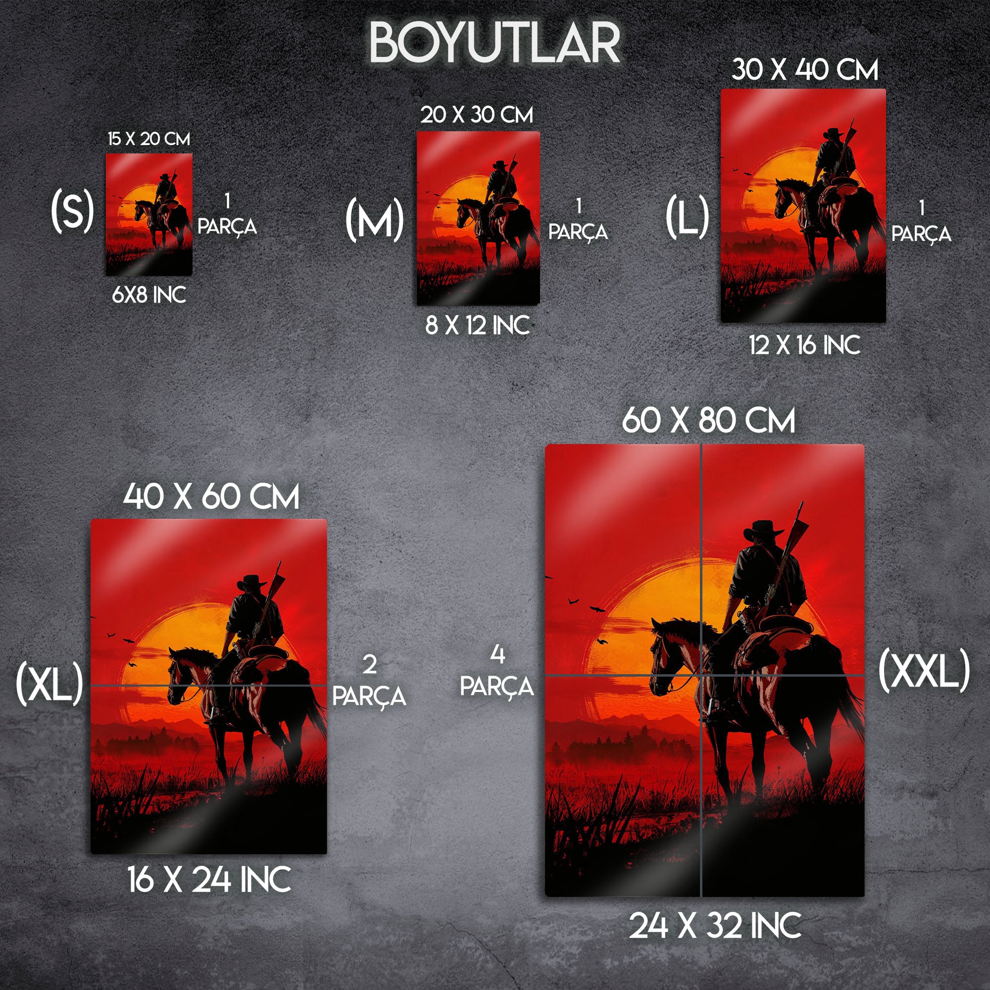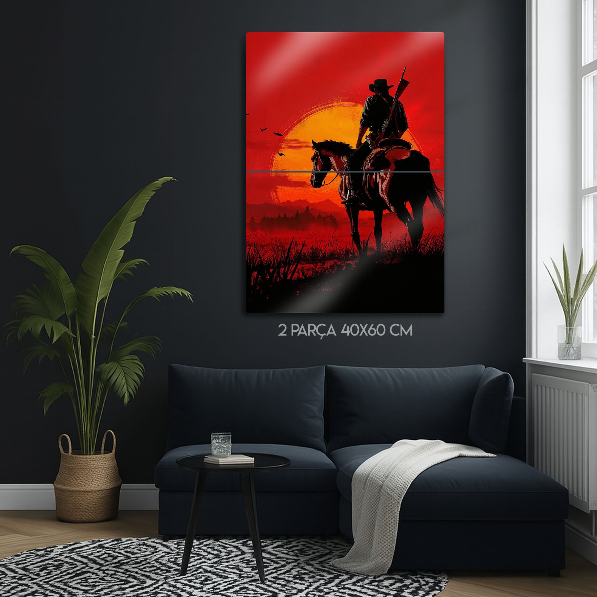 Vahşi Batı'nın son kanun kaçağının o yorgun ama sarsılmaz ruhunu, sanatsal bir yorumla duvarlarınıza taşıyın. Bu olağanüstü metal tablo, Red Dead Redemption 2'nin efsanevi kahramanı Arthur Morgan'ı, "Sin City" estetiğini andıran, yüksek kontrastlı kırmızı ve siyah tonlarda, karanlık ve dramatik bir portreyle sunuyor.