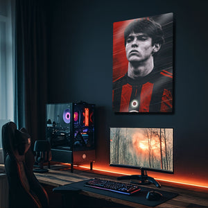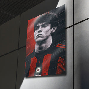 Futbolun zarif prensi, AC Milan efsanesi Ricardo Kaká'nın unutulmaz karizmasını ve sahadaki o kararlı duruşunu duvarlarınıza taşıyın! Bu özel tasarım metal tablo, Kaká'nın ikonik kırmızı-siyahlı (Rossoneri) formasıyla o efsanevi anlarından birini, modern ve sanatsal bir yorumla ölümsüzleştiriyor.