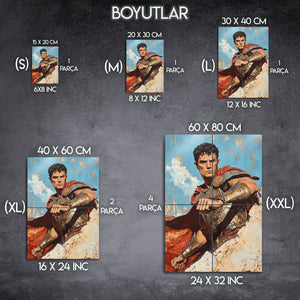 ''Veni, Vidi, Vici!'' (Geldim, Gördüm, Yendim!) Tarihin en büyük imparatorluklarından biri olan Roma'nın sarsılmaz gücünü, disiplinini ve liderlik ruhunu duvarlarınıza taşıyın. Bu olağanüstü metal tablo, bir Roma komutanının veya lejyonerinin o kararlı, düşünceli ve mağrur anını, modern bir yağlı boya ve palet bıçağı tekniği estetiğiyle yeniden canlandırıyor.