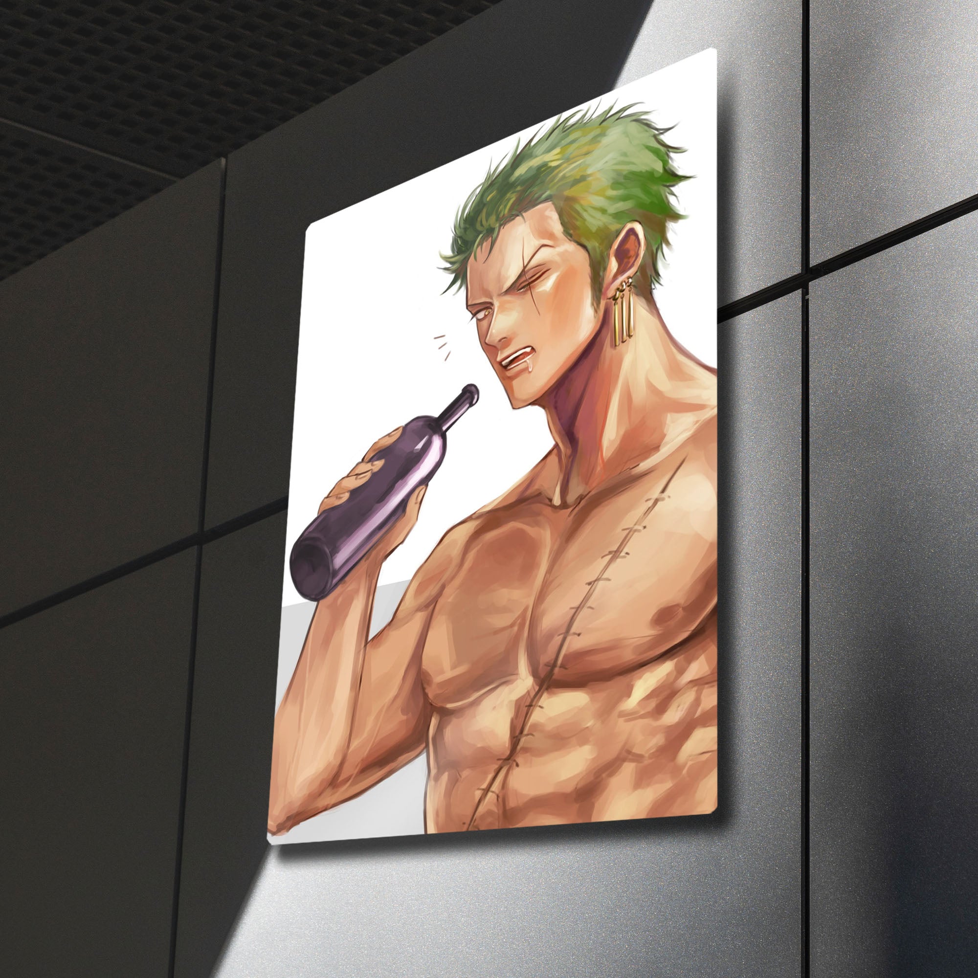 ''Sırtımdaki yara, bir kılıç ustasının utancıdır!'' Dünyanın en büyük kılıç ustası olma yolundaki sarsılmaz iradenin ve gücün simgesi, Roronoa Zoro'nun o karizmatik ve umursamaz anını duvarlarınıza taşıyın. Bu özel tasarım metal tablo, Zoro'nun zorlu bir dövüşün ardından o meşhur dinlenme anlarından birini, sanatsal bir yağlı boya estetiğiyle yeniden canlandırıyor.