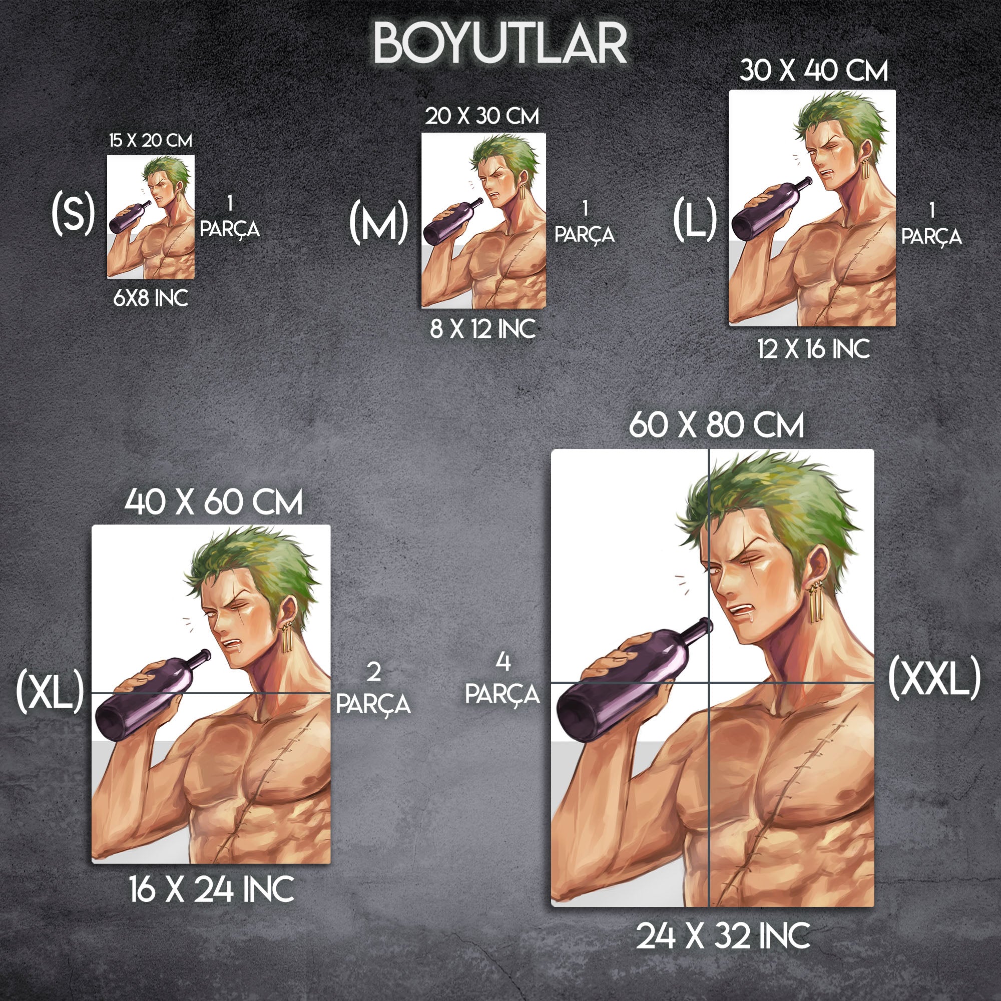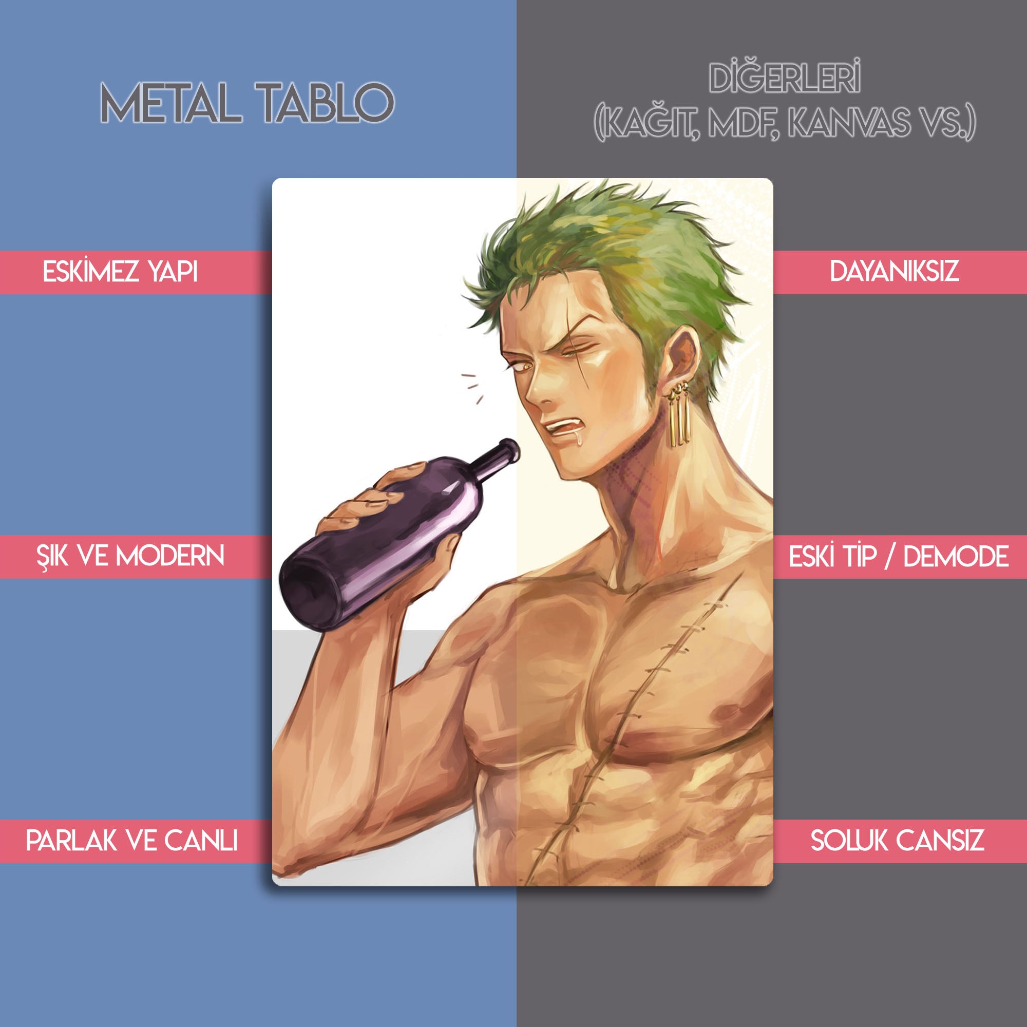 Bu eser, her One Piece ve anime hayranının koleksiyonunda olması gereken, hem güçlü hem de son derece havalı bir parçadır. Metalin modern dokusu, bu sanatsal tasarımın her bir fırça darbesini, Zoro'nun ikonik yara izini ve kaslı fiziğini mükemmel bir şekilde öne çıkarır. Oyun odaları, "man cave"ler, genç odaları veya modern yaşam alanlarına anında bir karakter ve savaşçı ruhu katacaktır.