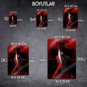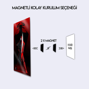 Kırmızının ve siyahın dramatik kontrastı, bu esere hem vahşi hem de son derece stil sahibi bir atmosfer katıyor. Bu tablo, sadece bir çizgi film posteri değil, aynı zamanda onurun, adaletin ve asla pes etmemenin bir manifestosudur. Metalin modern dokusu, bu keskin hatlı ve sanatsal tasarımın her bir detayını ve enerjisini daha da öne çıkarır.