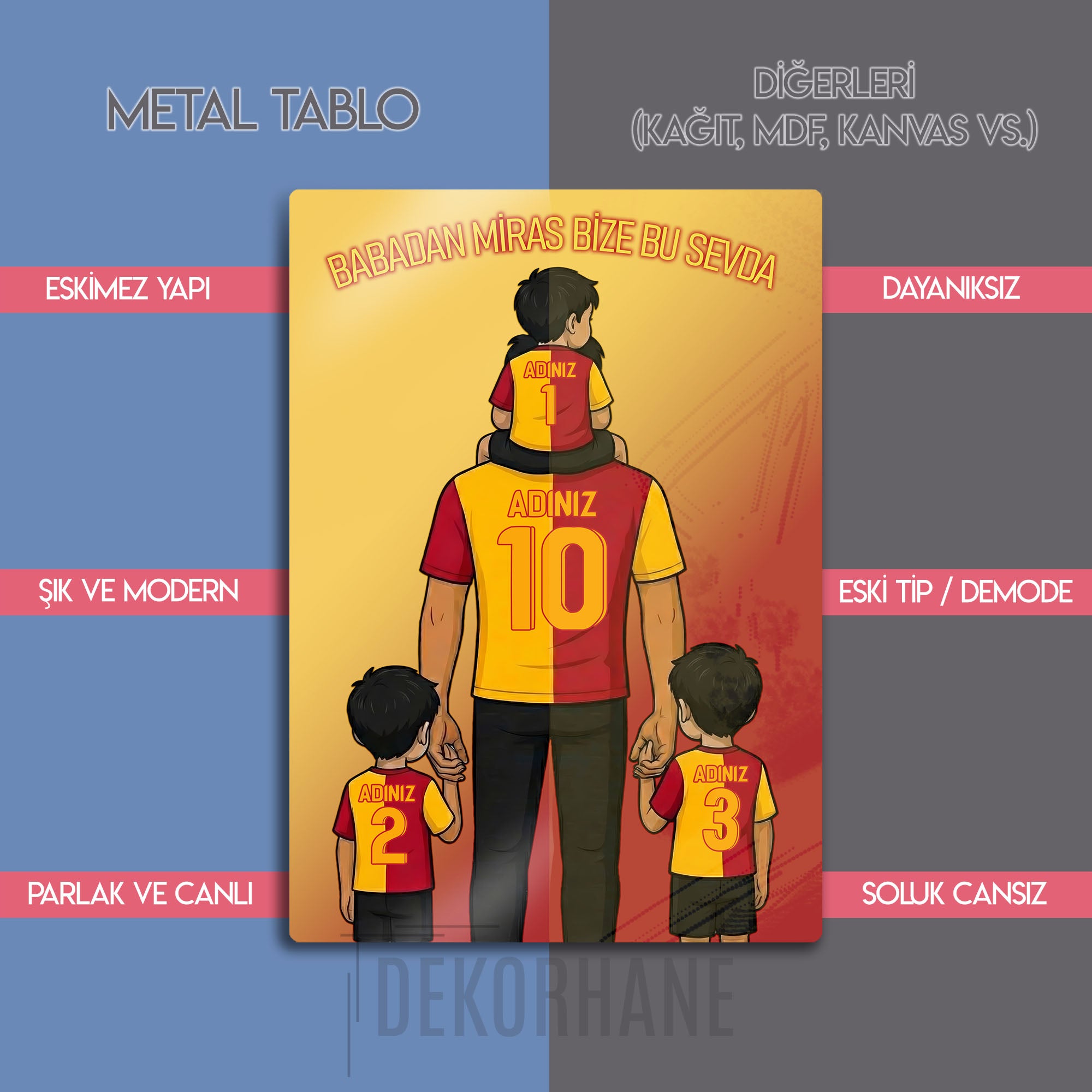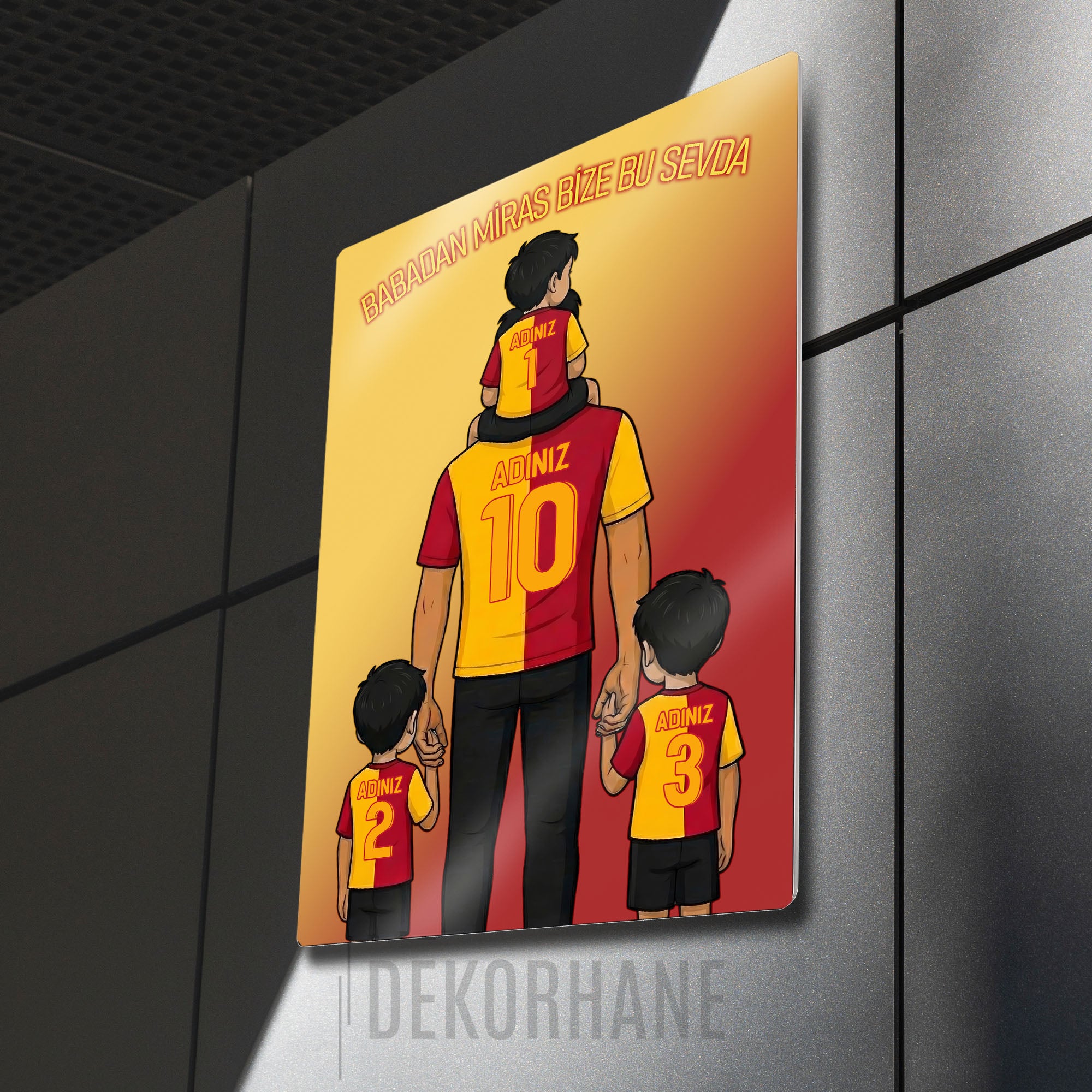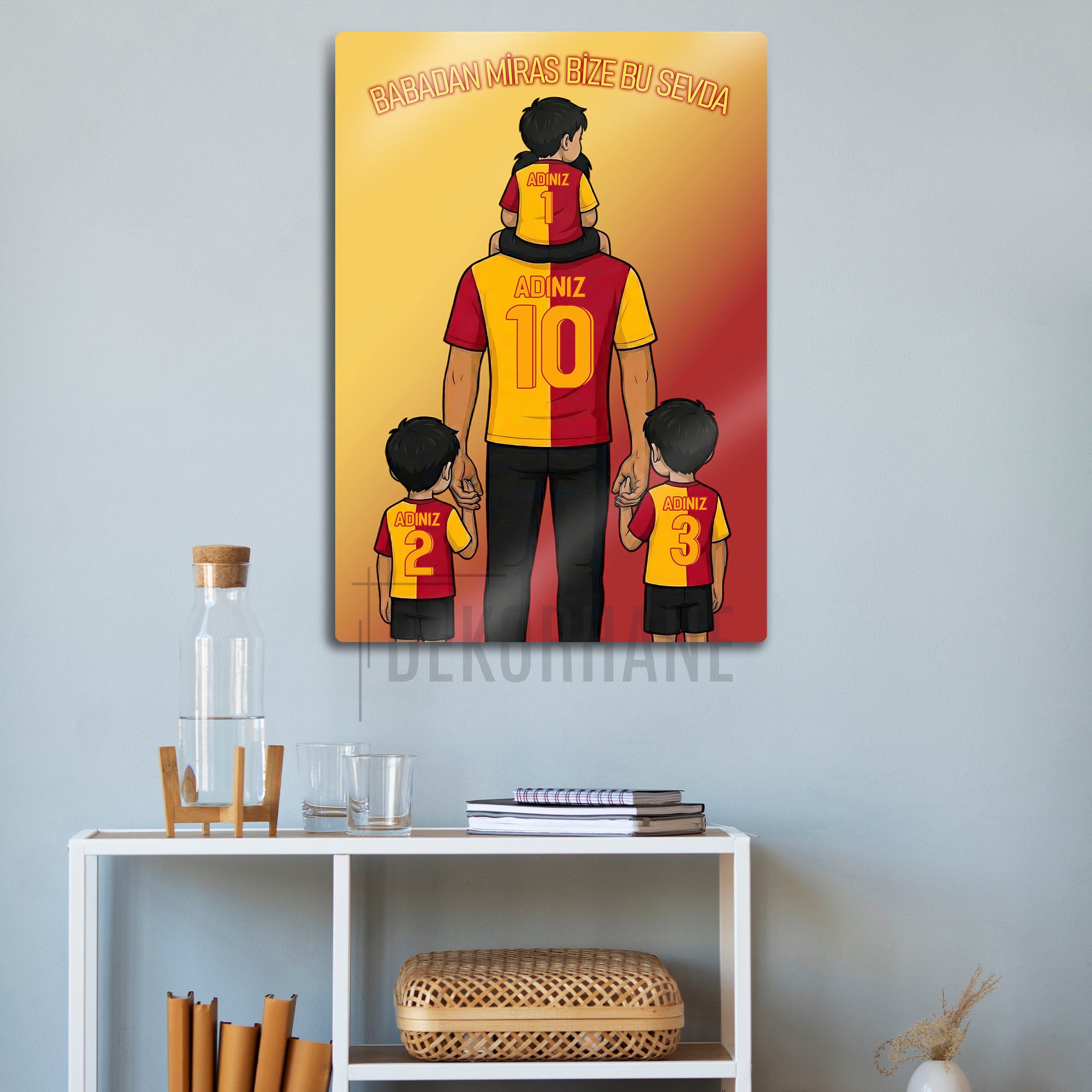 Babadan Miras Bu Sevda: Kişiye Özel Galatasaray Baba ve 3 Oğul Metal Tablosu