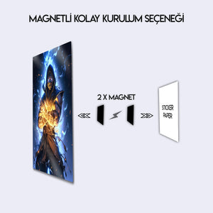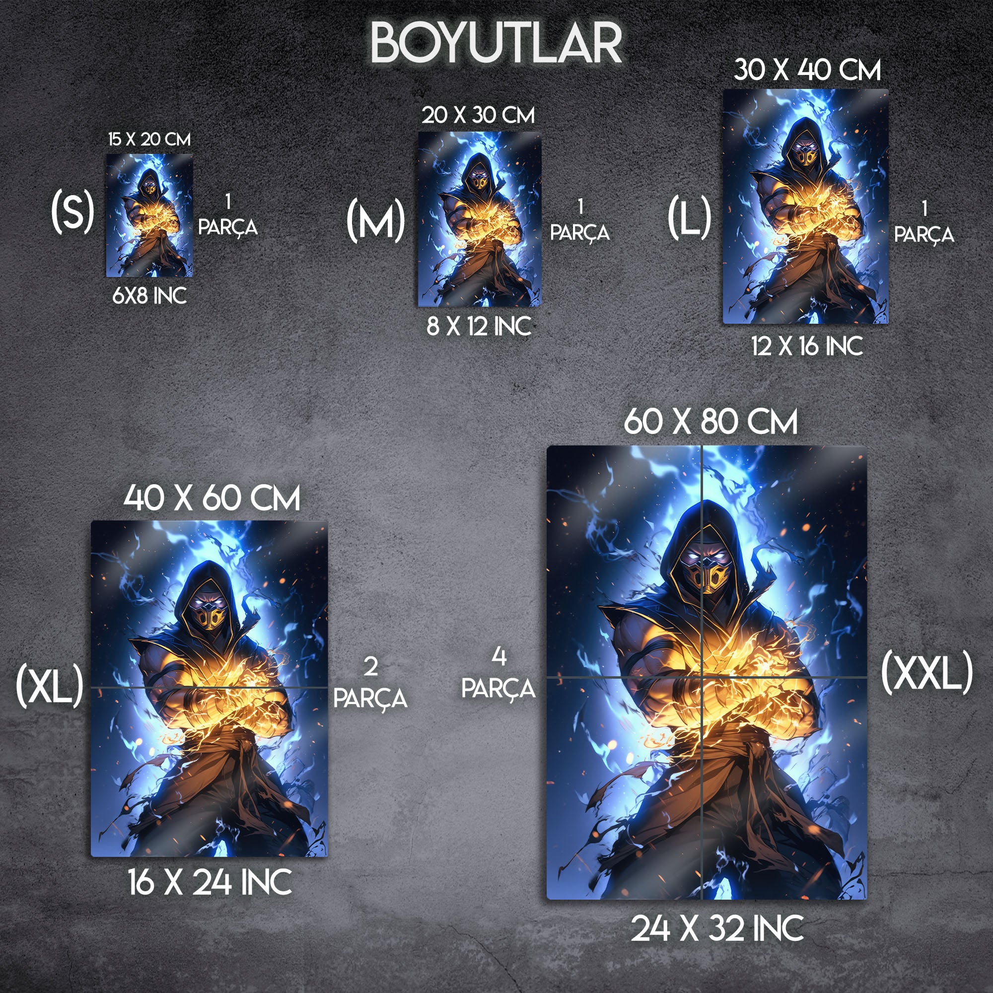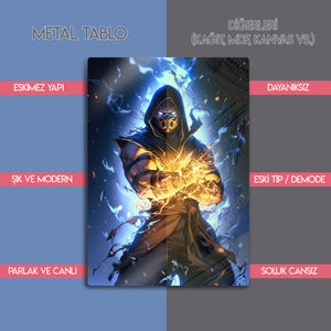 Bu eser, her Mortal Kombat ve dövüş oyunu hayranının koleksiyonunda olması gereken bir başyapıttır. Yüksek çözünürlüklü baskı kalitesi, ateşin ve buzun yarattığı dinamik kontrastı, Scorpion'un her bir detayını ve o anın enerjisini metalin modern yüzeyinde adeta canlandırıyor. Oyun odaları, "man cave"ler, stüdyolar veya modern yaşam alanlarına anında bir adrenalin, güç ve epik bir atmosfer katacaktır.