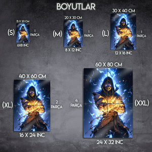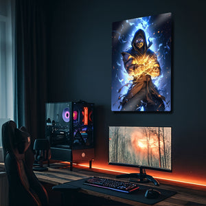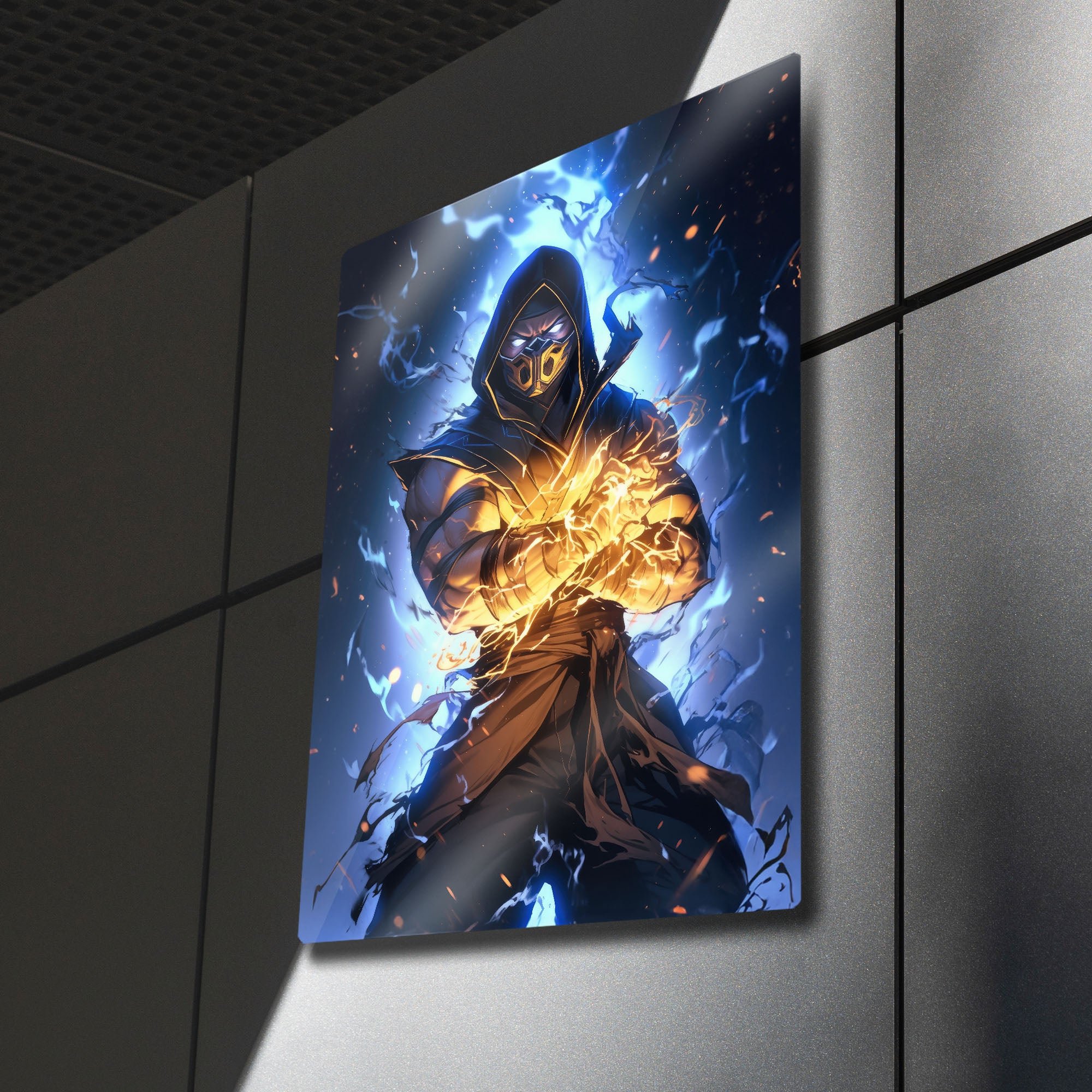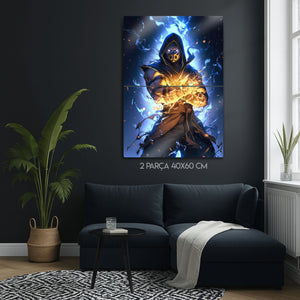 ''GET OVER HERE!'' Dövüş oyunu dünyasının efsanesi, Shirai Ryu klanının ölümsüz savaşçısı Scorpion'un dizginlenemez gücünü duvarlarınıza taşıyın! Bu olağanüstü metal tablo, Scorpion'un cehennem ateşini ve elementlerin gücünü bir araya getirdiği o ikonik anı, nefes kesici bir sanat eseriyle ölümsüzleştiriyor.
