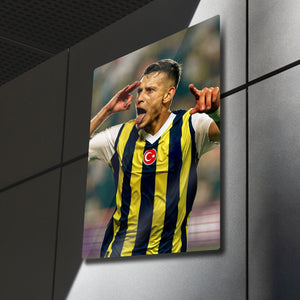 Sarı Lacivert'in Polonyalı yıldızı Sebastian Szymański'nin sahadaki hırsını, tutkusunu ve o unutulmaz gol sevincini duvarlarınıza taşıyın! Bu özel tasarım metal tablo, Szymański'nin Fenerbahçe formasıyla attığı bir golden sonra yaşadığı o coşku dolu anı, tüm enerjisiyle ölümsüzleştiriyor.