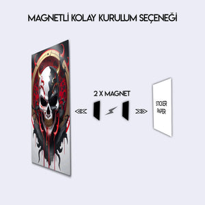 Detaylı ve üç boyutlu hissi veren bu illüstrasyon, metalin modern ve pürüzsüz yüzeyinde adeta canlanıyor. Bu cesur ve sanatsal eser, oyun odaları, "man cave"ler, stüdyolar, barlar veya gotik ve fantastik sanatı seven herkesin yaşam alanına anında bir karakter ve iddialı bir atmosfer katmak için tasarlanmıştır.
