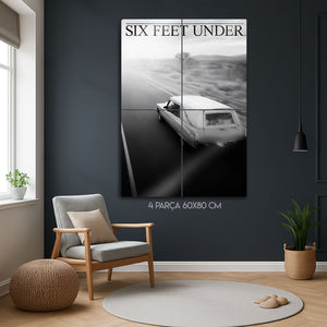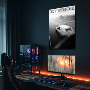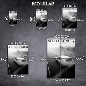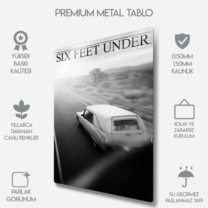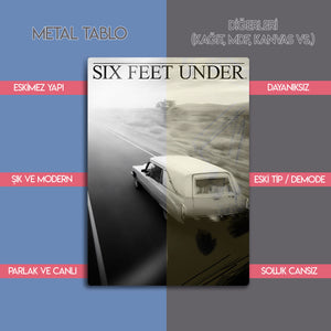 Televizyon tarihinin en çok konuşulan yapımlarından biri olan Six Feet Under dizisine özel hazırlanmış bu metal tablo, dramatik atmosferi ve etkileyici görselliğiyle dikkat çekiyor. HBO’nun kült dizilerinden olan Six Feet Under, yaşam, ölüm ve aile ilişkilerini derinlemesine işleyen kurgusuyla milyonlarca izleyicinin hafızasında yer etmiştir.