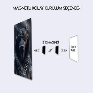 Pop art ve şehir kültüründen ilham alan bu tasarım, sıradan hayvan portrelerinin çok ötesinde, bir yaşam tarzı ifadesidir. Bu tablo, sadece bir dekorasyon objesi değil, aynı zamanda mekanınıza mizah ve "cool" bir hava katacak bir sanat eseridir. Modern salonlar, "man cave"ler, oyun odaları, stüdyolar veya berber dükkanları için mükemmel bir "statement" parçasıdır.