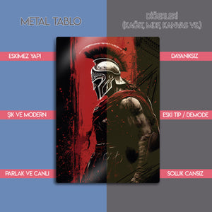 Tarihin en cesur, en disiplinli ve en korkusuz savaşçılarının, Spartalıların o sarsılmaz ruhunu ve onurunu duvarlarınıza taşıyın. Bu olağanüstü metal tablo, sayısız savaştan çıkmış, kan ve zaferle bezenmiş bir Spartalı hoplitin o mağrur ve kararlı anını, sanatsal bir yorumla ölümsüzleştiriyor.