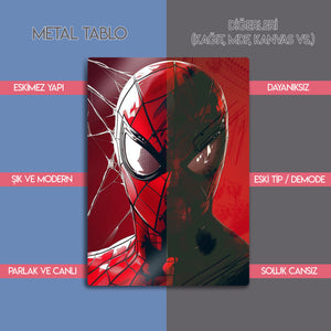 ''Büyük güç, büyük sorumluluk getirir.'' Mahallenizin dost canlısı komşusu Örümcek Adam'ın o kararlı ve ikonik portresini, modern bir sanat yorumuyla duvarlarınıza taşıyın! Bu olağanüstü metal tablo, Spider-Man'i, Japon animesi ve modern çizgi roman estetiğini birleştiren dinamik ve stil sahibi bir illüstrasyonla tasvir ediyor.