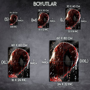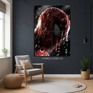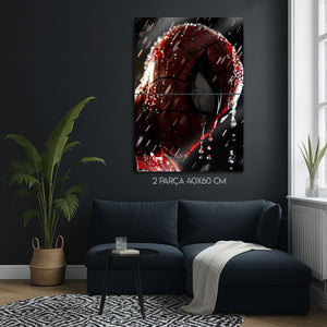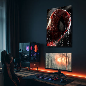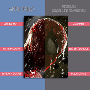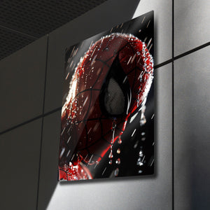 Bu eser, sadece bir süper kahraman posteri değil, aynı zamanda bir kahramanın fedakarlığını ve insanlığını anlatan sinematik bir sanat eseridir. Yüksek çözünürlüklü baskı kalitesi, kostümün dokusundan süzülen her bir su damlasını ve o anın melankolik atmosferini metalin modern yüzeyinde adeta canlandırıyor. Bu tablo, her Spider-Man hayranının koleksiyonunda olması gereken, derin ve sanatsal bir parçadır.