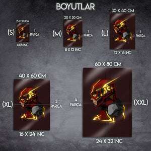 ''My name is Barry Allen, and I am the fastest man alive.'' ("Benim adım Barry Allen ve ben yaşayan en hızlı insanım.") DC evreninin en sevilen ve en hızlı kahramanı The Flash'in o durdurulamaz enerjisini duvarlarınıza taşıyın! Bu özel tasarım metal tablo, "Injustice 2" video oyunundaki modern ve zırhlı kostümüyle The Flash'i, keskin hatlı ve dinamik bir vektörel sanat stiliyle sunuyor.