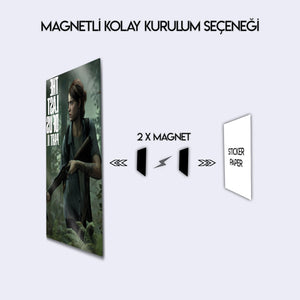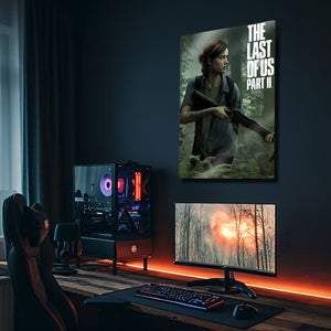 Bu eser, sadece bir oyun posteri değil, aynı zamanda video oyunu tarihinin en tartışmalı ve en güçlü hikayelerinden birine bir saygı duruşudur. Yüksek çözünürlüklü baskı kalitesi, ormanın sisli atmosferini, Ellie'nin yüzündeki her bir detayı ve o anın gerilimini metalin modern dokusuyla birleştirerek adeta canlandırıyor. Oyun odaları, "man cave"ler, salonlar veya modern yaşam alanlarına anında bir karakter ve sanatsal bir derinlik katacaktır.