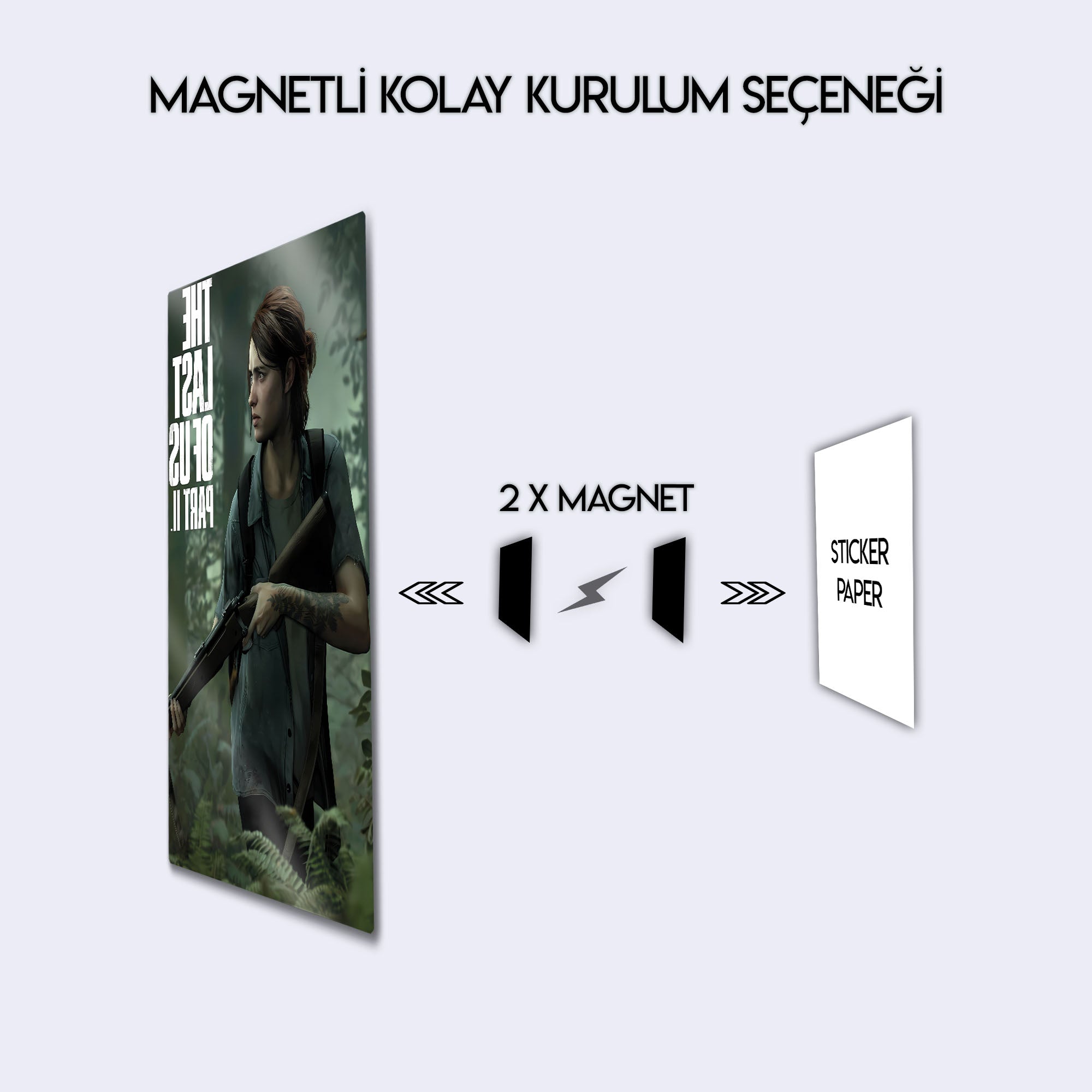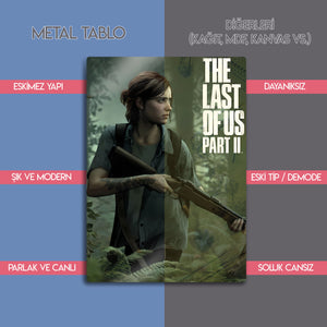 Oyun dünyasını sarsan başyapıt The Last of Us Part II'nin o unutulmaz ve yoğun atmosferini duvarlarınıza taşıyın. Bu metal tablo, oyunun ikonik kapak tasarımını, intikam ve hayatta kalma mücadelesiyle dolu Ellie'nin o kararlı ve sert portresini en yüksek kalitede sunuyor.