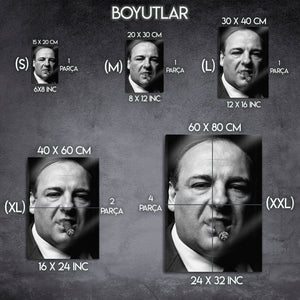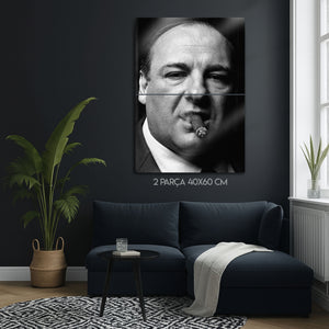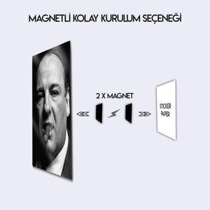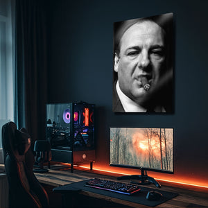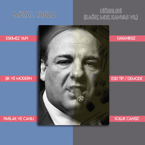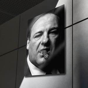 ''Woke up this morning, got yourself a gun...'' Televizyonun altın çağını başlatan, tüm zamanların en iyi dizisi "The Sopranos"un efsanevi patronu Tony Soprano'nun o unutulmaz ve karizmatik anını duvarlarınıza taşıyın. Bu olağanüstü metal tablo, James Gandolfini'nin ölümsüz performansıyla hayat bulan Tony Soprano'yu, o meşhur purosu ve delici bakışlarıyla, siyah beyazın zamansız asaletiyle ölümsüzleştiriyor.