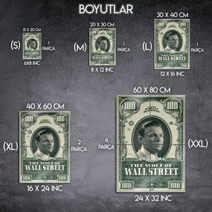 Bu eser, sadece bir film posteri değil, aynı zamanda kapitalizmin, aşırılığın ve Amerikan Rüyası'nın karanlık yüzünün bir manifestosudur. Metalin modern dokusu, bu detaylı ve sanatsal tasarımın her bir çizgisini ve dokusunu mükemmel bir şekilde öne çıkarır. Ofisler, "man cave"ler, borsacılar, girişimciler ve modern yaşam alanlarına anında bir karakter, motivasyon (veya bir uyarı!) ve entelektüel bir hava katacaktır.