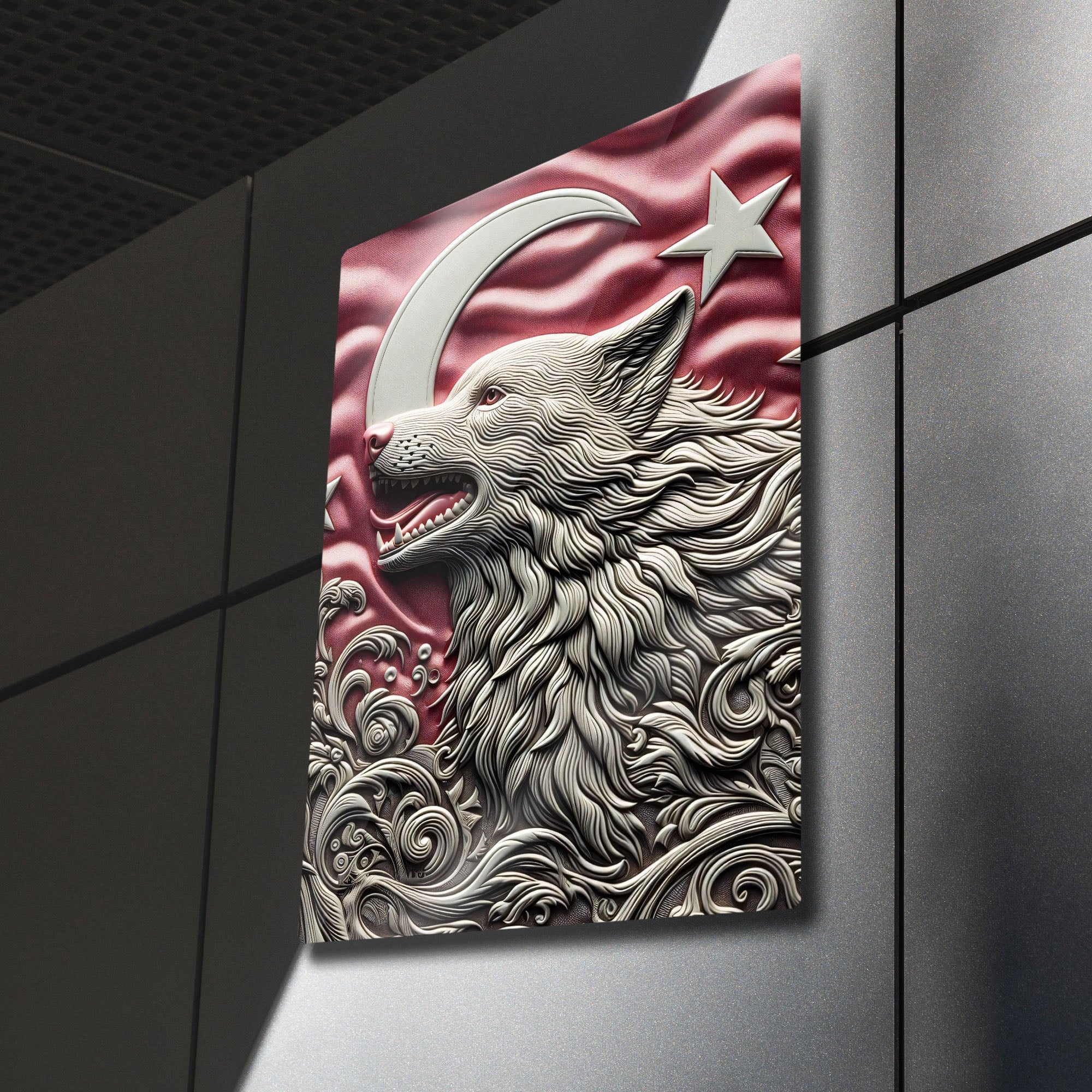 3D Türk Bayrağı ve Bozkurt, Ay Yıldız - Metal Tablo