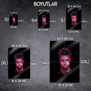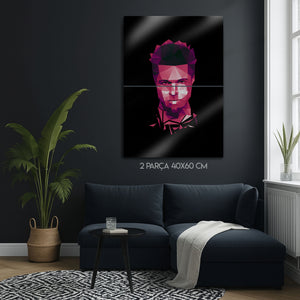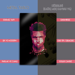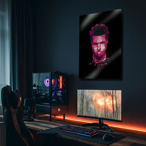 ''Dövüş Kulübü'nün ilk kuralı, Dövüş Kulübü hakkında konuşmamaktır.'' Bir neslin anti-kahramanı, sistem karşıtı anarşist Tyler Durden'ın o karizmatik ve asi ruhunu, modern bir sanat yorumuyla duvarlarınıza taşıyın! Bu olağanüstü metal tablo, Brad Pitt'in hayat verdiği ikonik karakteri, keskin geometrik şekillerden oluşan poligonal (low poly) bir sanat stiliyle yeniden yorumluyor.