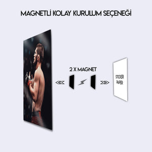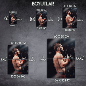 Efsanevi UFC dövüşçüsü Khabib Nurmagomedov temalı bu özel metal tablo, dövüş sporları tutkunları için eşsiz bir dekoratif üründür. MMA ve UFC dünyasının en unutulmaz isimlerinden Khabib’in ringdeki ikonik duruşunu yansıtan bu tasarım, spor salonları, genç odaları, ofisler veya koleksiyon köşeleri için mükemmel bir seçimdir. Yüksek kaliteli baskısı ve dayanıklı metal yüzeyi sayesinde uzun yıllar ilk günkü gibi kalır. Dövüş sporu seven arkadaşlarınıza da özel bir hediye alternatifi sunar.
