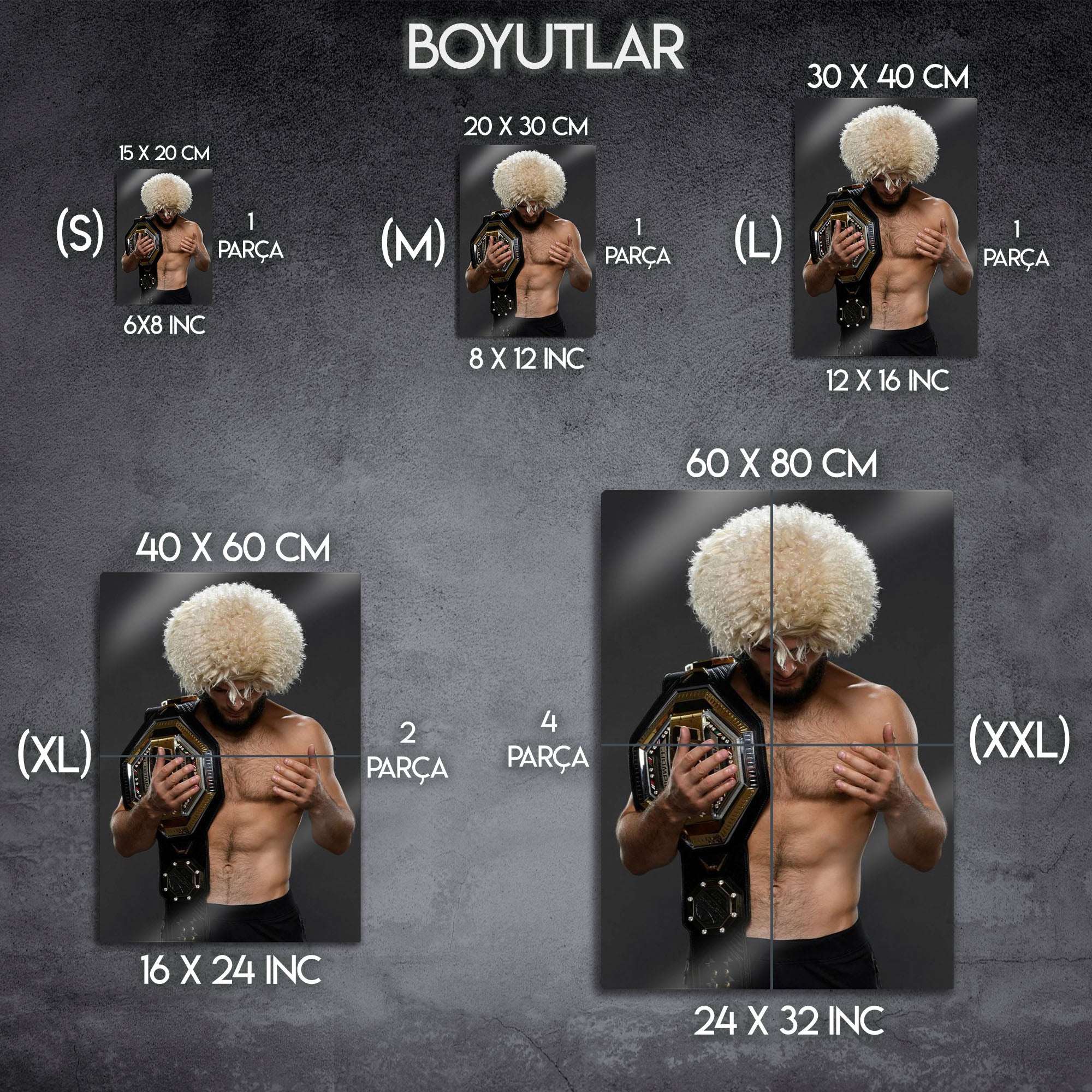 Efsanevi UFC dövüşçüsü Khabib Nurmagomedov temalı bu özel metal tablo, dövüş sporları tutkunları için eşsiz bir dekoratif üründür. MMA ve UFC dünyasının en unutulmaz isimlerinden Khabib’in ringdeki ikonik duruşunu yansıtan bu tasarım, spor salonları, genç odaları, ofisler veya koleksiyon köşeleri için mükemmel bir seçimdir. Yüksek kaliteli baskısı ve dayanıklı metal yüzeyi sayesinde uzun yıllar ilk günkü gibi kalır. Dövüş sporu seven arkadaşlarınıza da özel bir hediye alternatifi sunar.