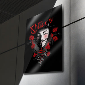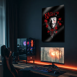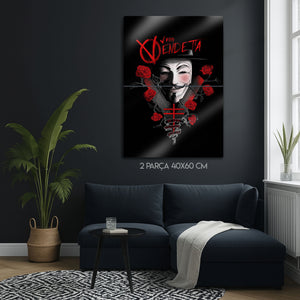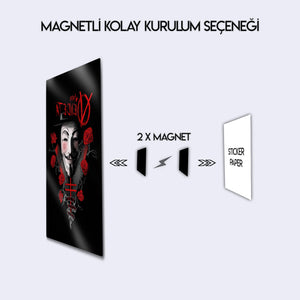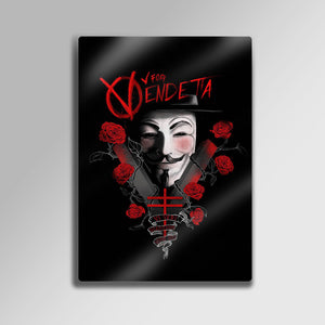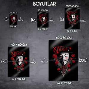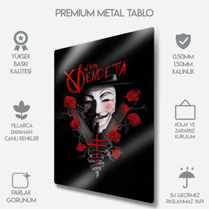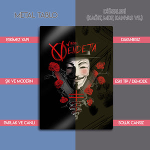 ''Bu maskenin altında bir yüzden fazlası var. Bu maskenin altında bir fikir var, Bay Creedy. Ve fikirlere kurşun işlemez!'' Özgürlüğün, isyanın ve fikirlerin ölümsüzlüğünün sembolü olan "V for Vendetta"nın o unutulmaz ruhunu duvarlarınıza taşıyın. Bu özel tasarım metal tablo, Guy Fawkes maskesinin gizemini, Scarlet Carson güllerinin romantizmini ve "V"nin anarşist felsefesini, modern bir "tattoo art" (dövme sanatı) estetiğiyle birleştiriyor.