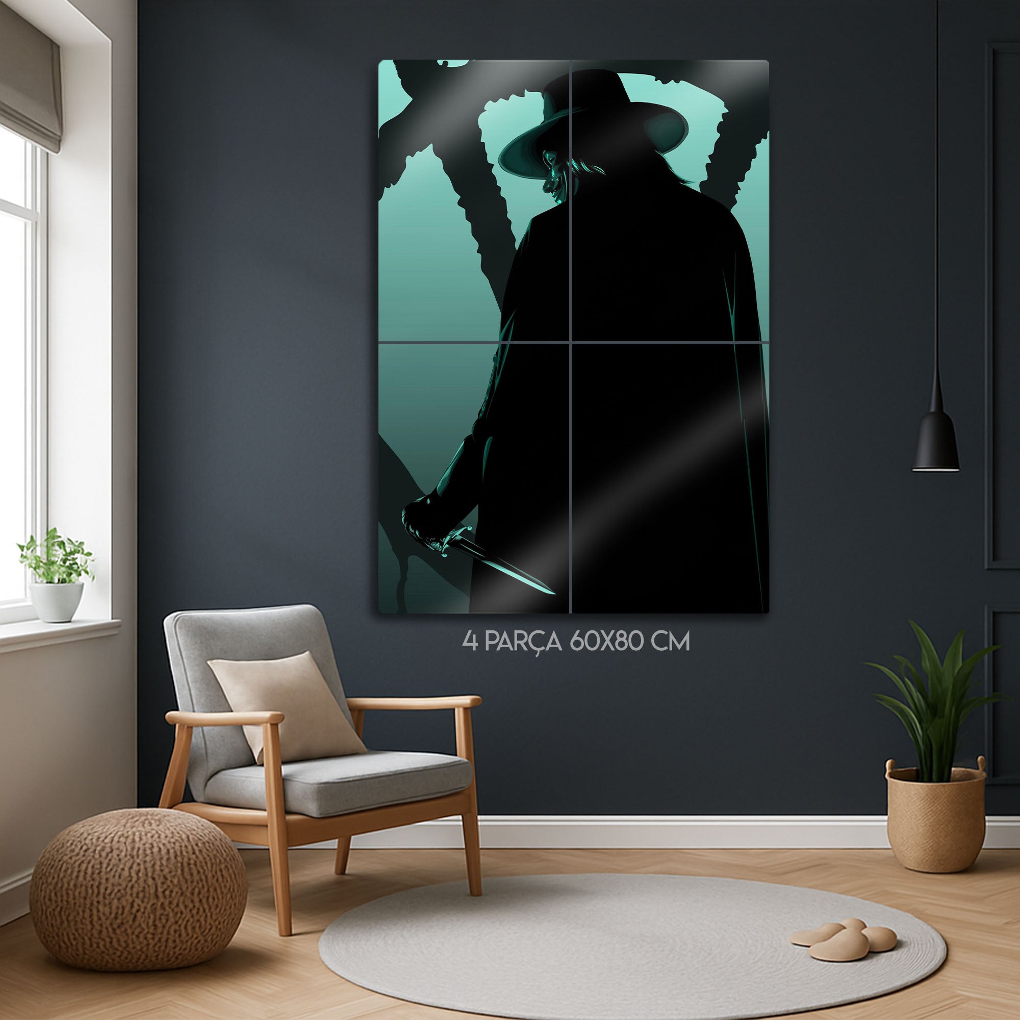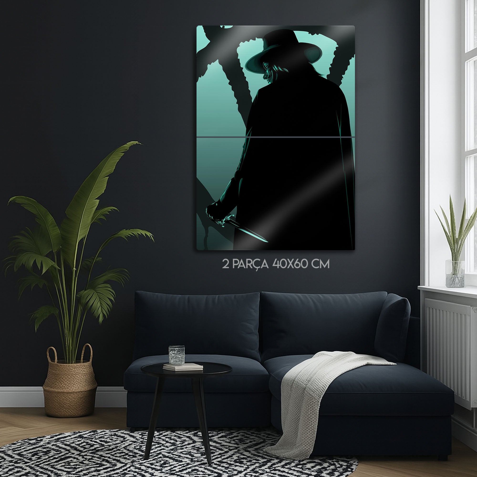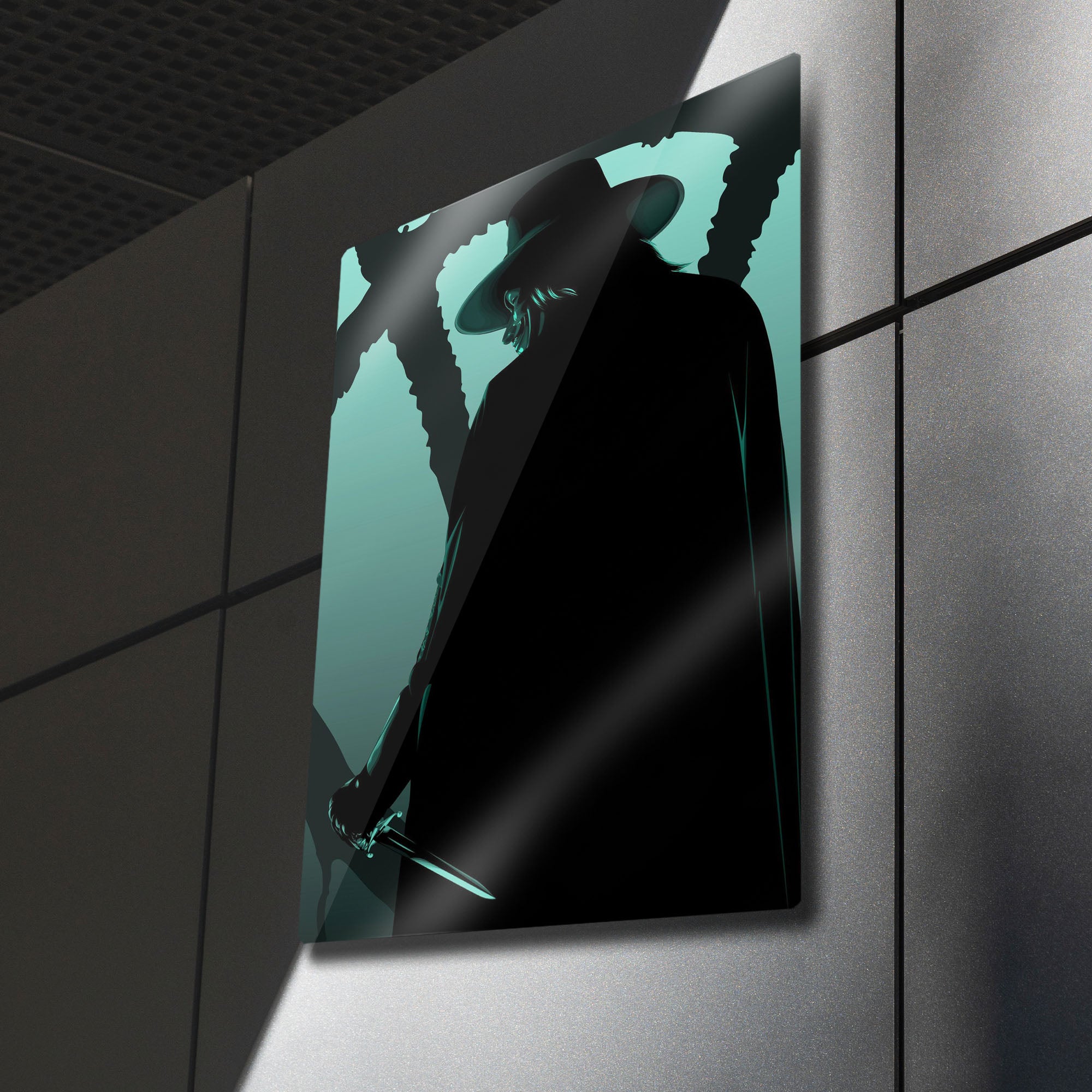 ''Bu maskenin altında bir yüzden fazlası var. Bu maskenin altında bir fikir var, Bay Creedy. Ve fikirlere kurşun işlemez!'' Özgürlüğün, isyanın ve fikirlerin ölümsüzlüğünün sembolü olan "V for Vendetta"nın o unutulmaz ruhunu duvarlarınıza taşıyın. Bu özel tasarım metal tablo, Guy Fawkes maskesinin gizemini, Scarlet Carson güllerinin romantizmini ve "V"nin anarşist felsefesini, modern bir "tattoo art" (dövme sanatı) estetiğiyle birleştiriyor.