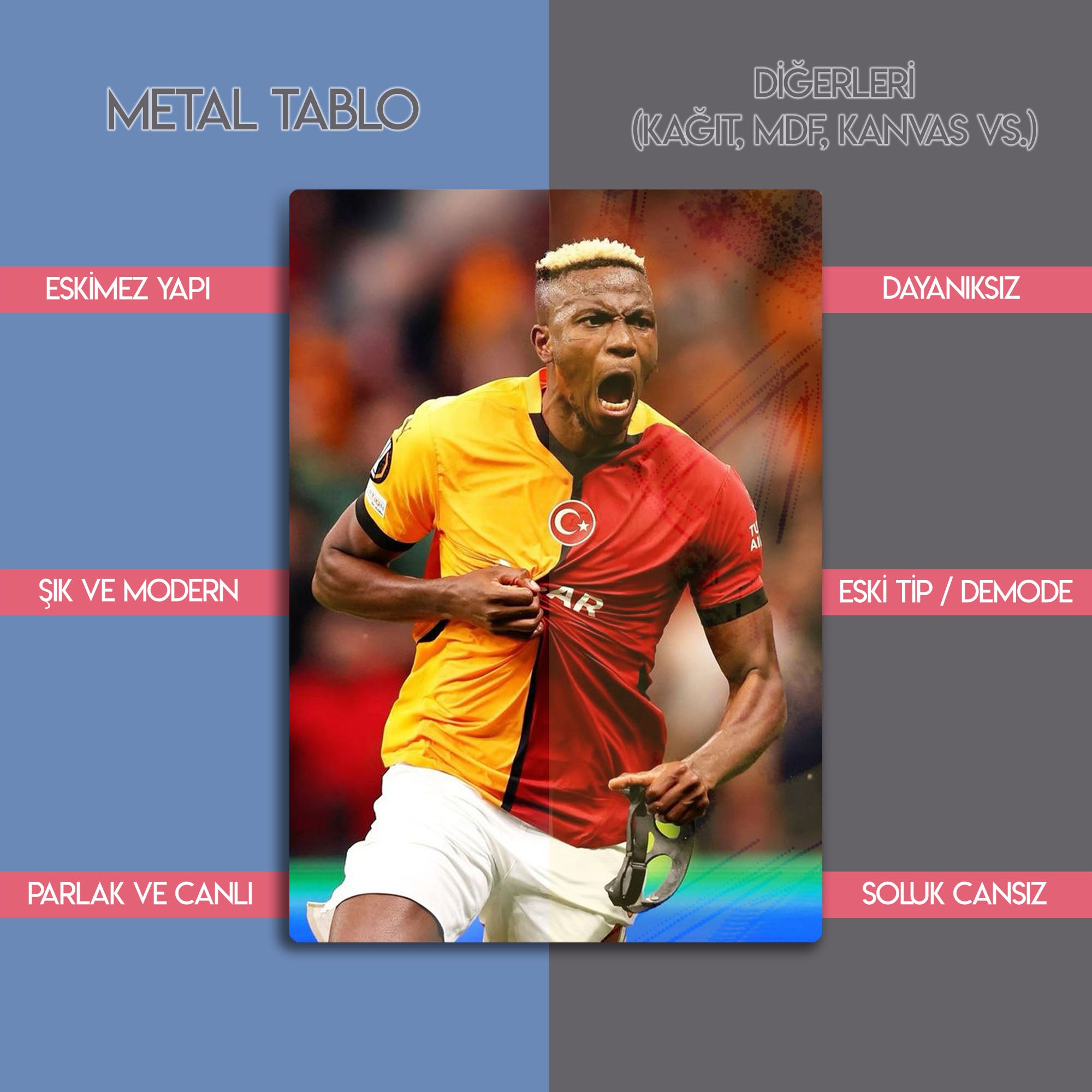 Victor Osimhen Galatasaray metal tablosu şimdi sizlerle. Evinize, ofisinize, duvarınıza renk katacak eşsiz koleksiyonda bir dekoratif tablo. Özel çerçeve seçenekleri, farklı tarzda seçilebilir boyutlar ile sipariş verebilirsiniz.