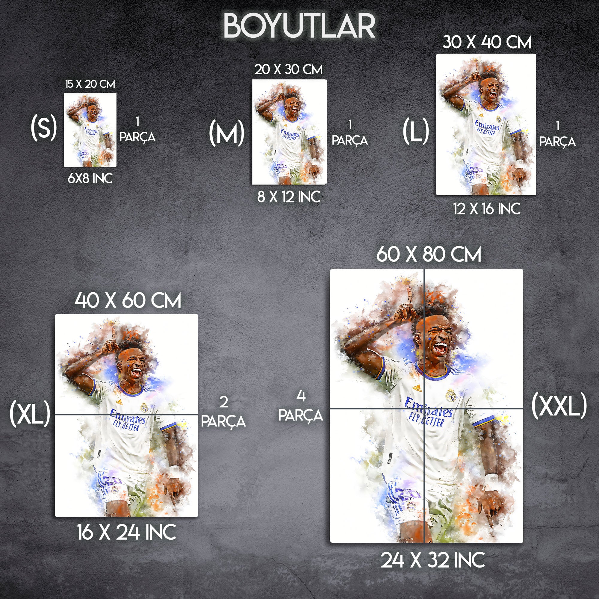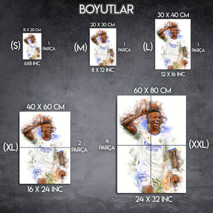 Vinicius Junior tablosu şimdi sizlerle. Evinize, ofisinize, duvarınıza renk katacak eşsiz koleksiyonda bir tablo.