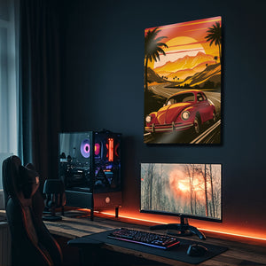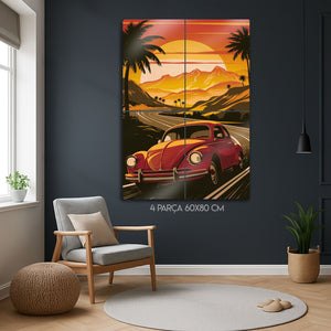 Volkswagen Beetle (Vosvos) Gün Batımı - Metal Tablo