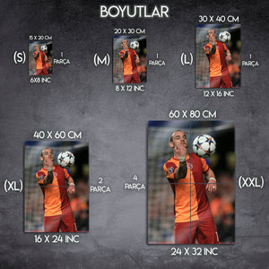 Dünya futbolu ve Galatasaray'ın efsanesi Wesley Sneijder'in Şampiyonlar Ligi hatıra tablosu şimdi sizlerle. Evinize, ofisinize, duvarınıza renk katacak eşsiz koleksiyonda bir tablo.