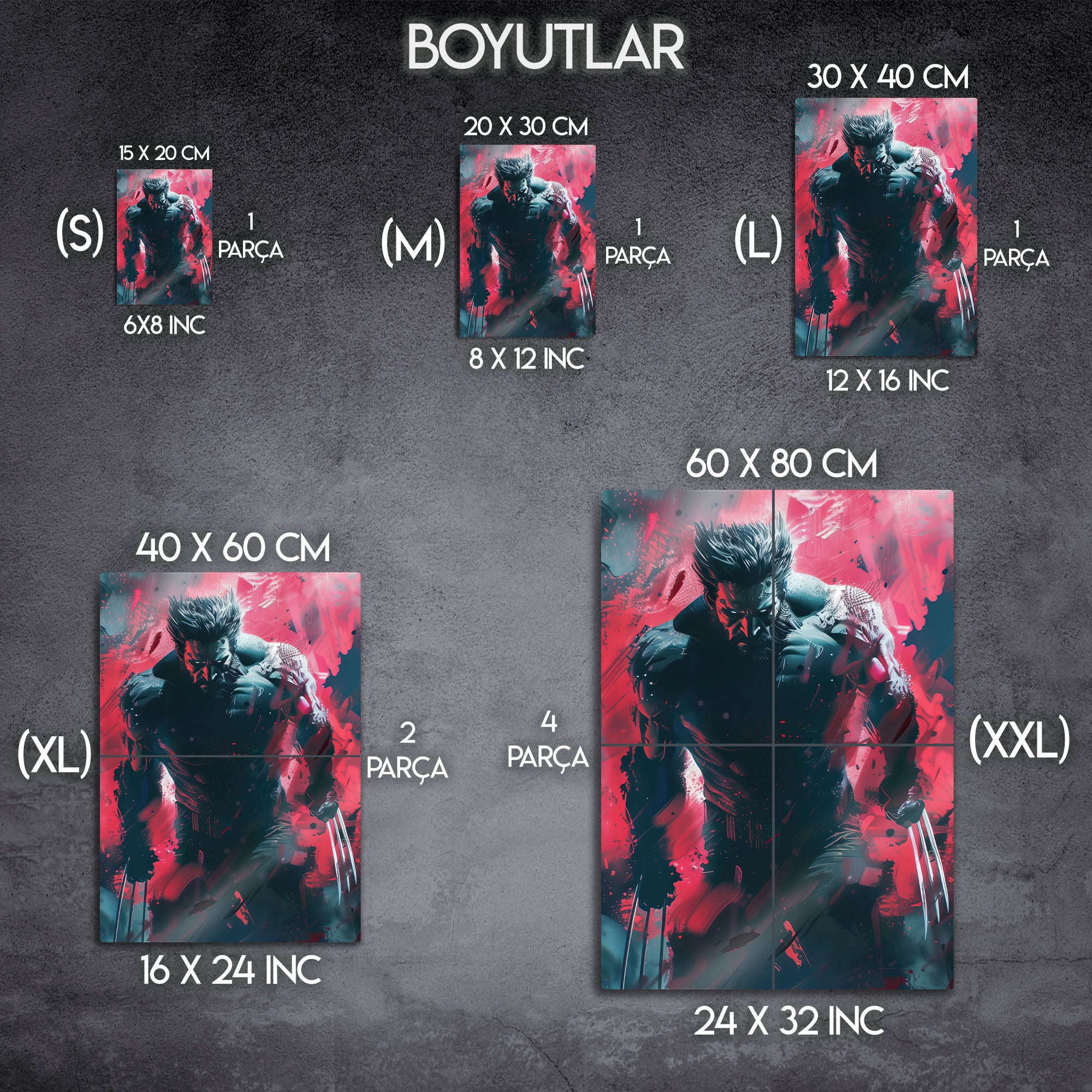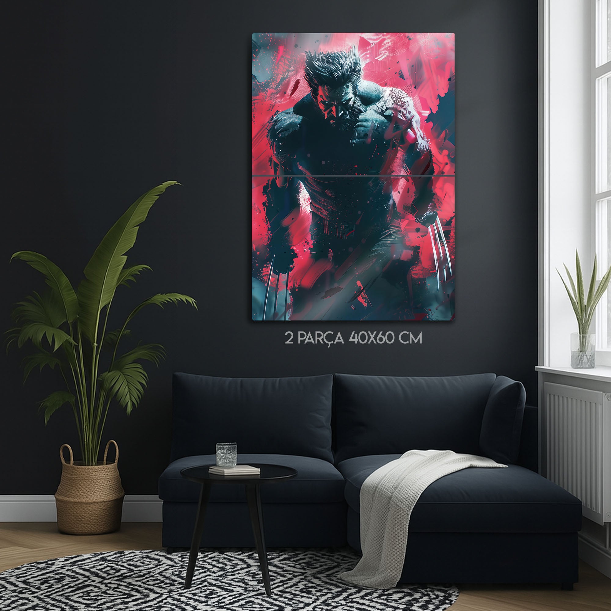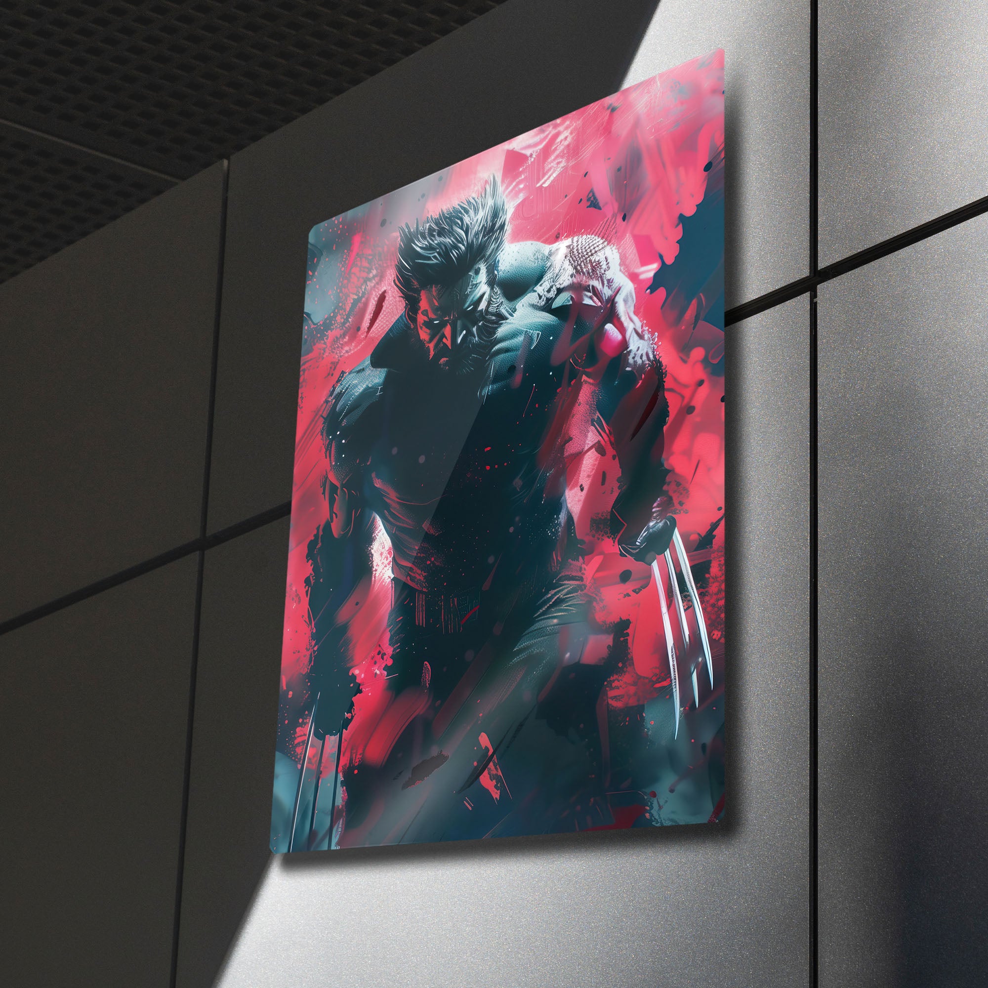 ''I'm the best there is at what I do, but what I do best isn't very nice.'' ("Yaptığım işte en iyisiyim, ama en iyi yaptığım şey pek hoş değil.") Marvel'ın en unutulmaz, en vahşi ve en karizmatik mutantı Wolverine'in o dizginlenemez öfkesini ve gücünü duvarlarınıza taşıyın. Bu olağanüstü metal tablo, Logan'ı, meşhur "Berserker Rage" (Vahşi Öfke) anında, ikonik adamantium pençeleri ve savaşın kaosuyla, dinamik bir "splash art" ve dijital sanat estetiğiyle birleştirerek ölümsüzleştiriyor.