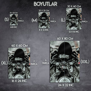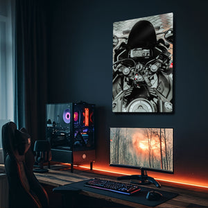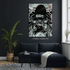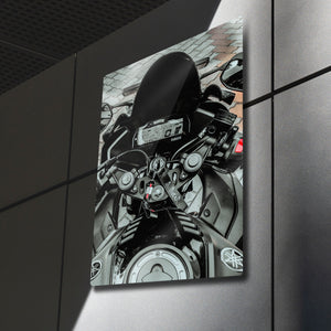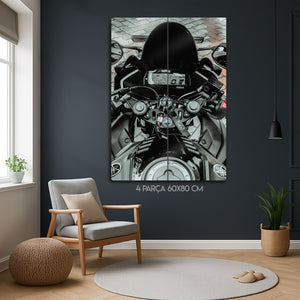 Bu eser, sadece bir motosiklet fotoğrafı değil, aynı zamanda bir tutkunun, bir yaşam tarzının ve yola çıkmadan önceki o son saniyelerin bir yansımasıdır. Metalin modern dokusu, dijital gösterge panelinin her bir detayını, gidonun metalik parlaklığını ve o anın "hazır ol" hissini mükemmel bir şekilde öne çıkarır. Garajınız, "man cave"iniz, ofisiniz veya modern yaşam alanlarınıza anında bir karakter, stil ve adrenalin ruhu katacaktır.