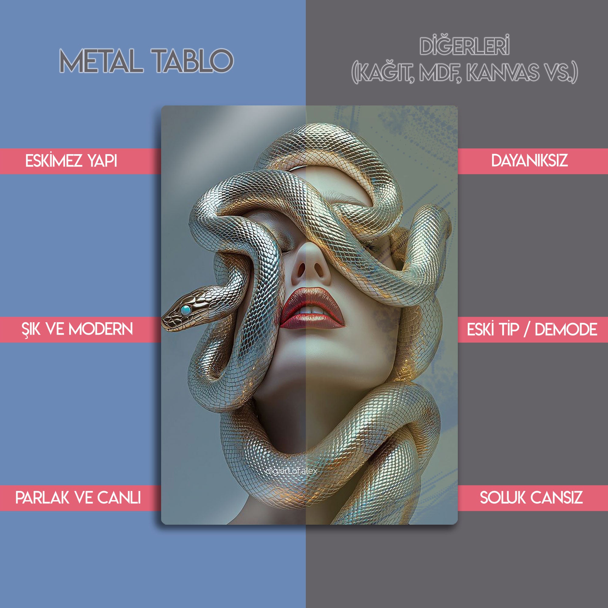 Modern Medusa ve Altın Yılan - Metal Tablo