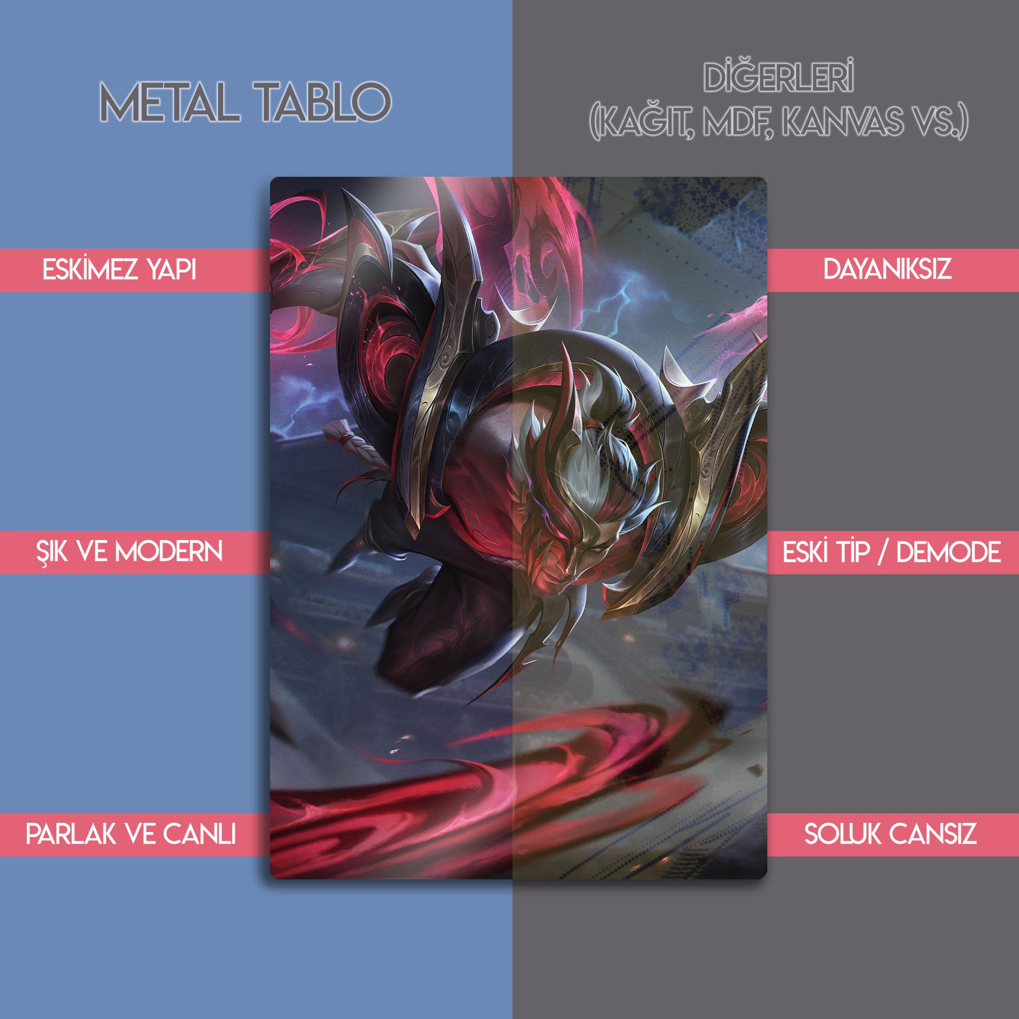 League of Legends karakteri Yücelik Yolu Zed tablosu şimdi sizlerle. Evinize, ofisinize, duvarınıza renk katacak eşsiz koleksiyonda bir tablo.