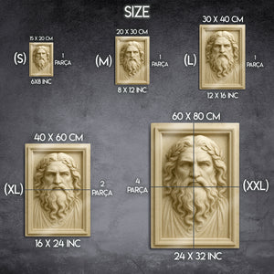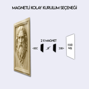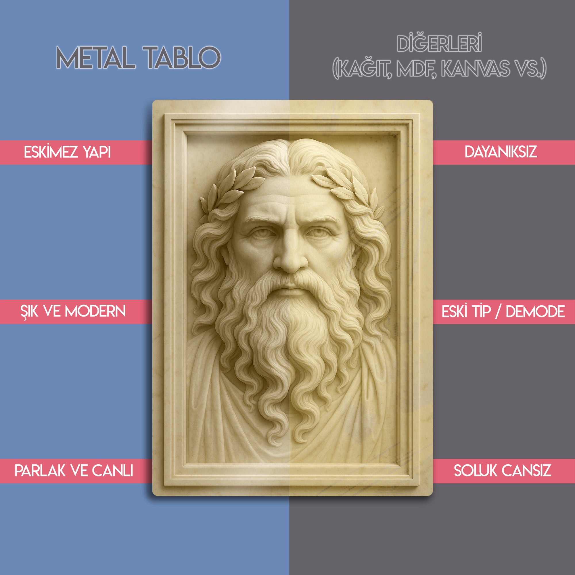 Antik mitolojinin en güçlü tanrısı Zeus’un kabartmalı portresi, yaşam alanlarınıza ihtişam ve tarihsel bir dokunuş katar. Sanatsal detaylarla işlenmiş bu 3D kabartmalı metal tablo, hem klasik hem de modern dekorasyon için ideal bir seçimdir.